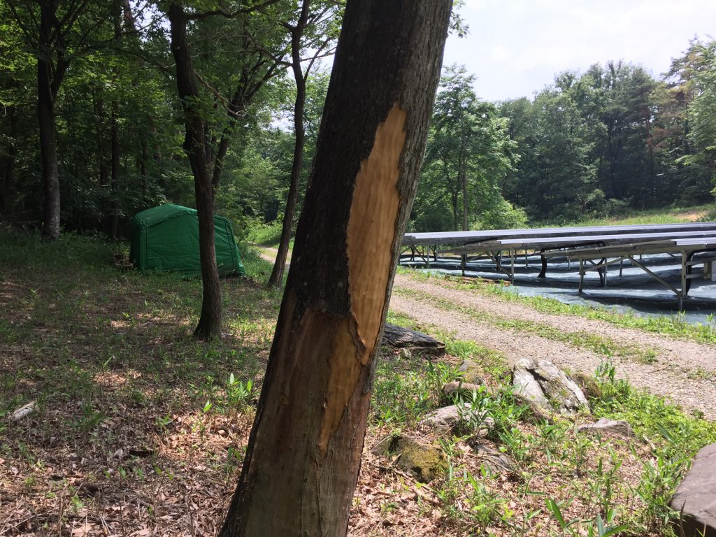 と、ここの木に新たな鹿の角跡が、、<また、やられてるぅ(ToT)>