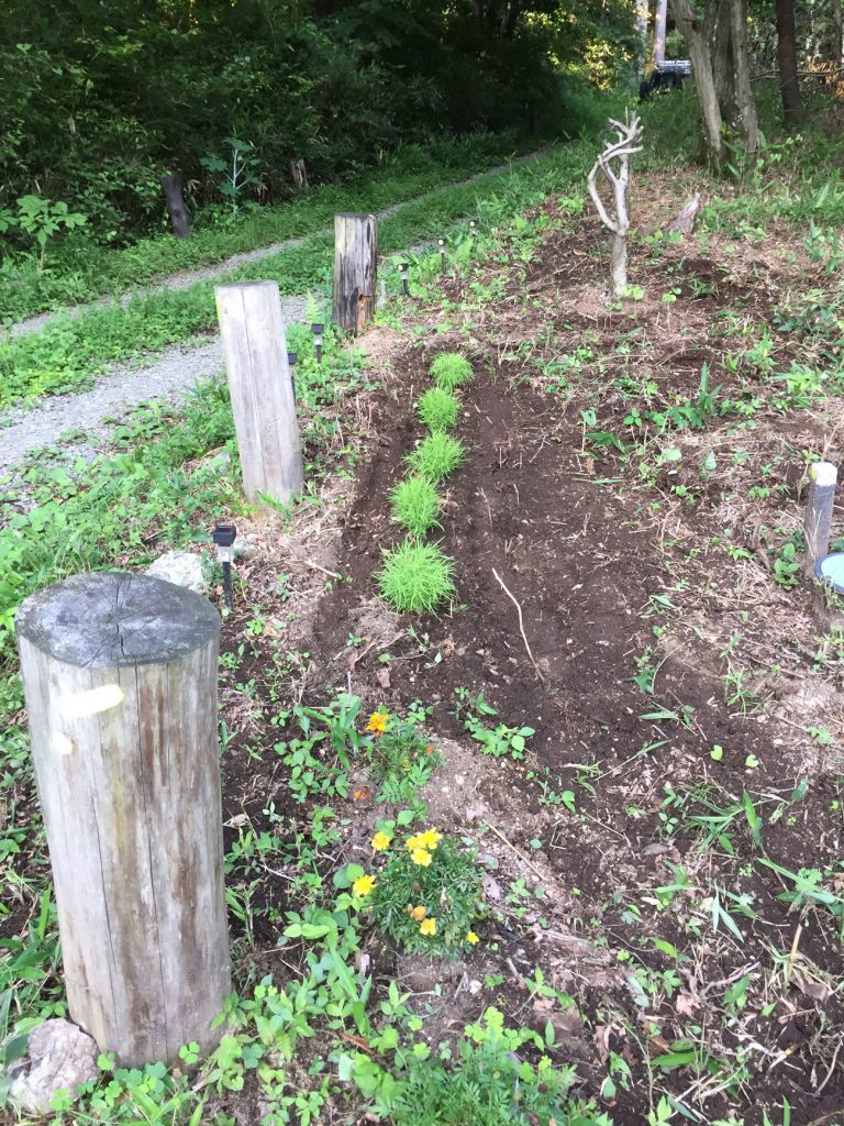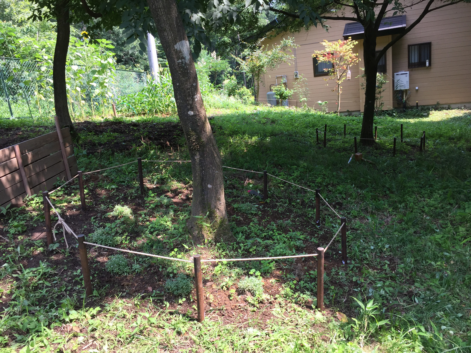 と、野菜畑のところも、、、(*^.^*) が、、杭が足りなくなり、1カ所のみ。