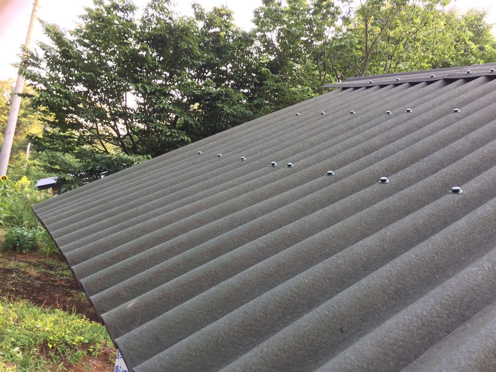 屋根材をのせて、ビス止めするんだけど、その止め具が、結構、硬いらしく、、