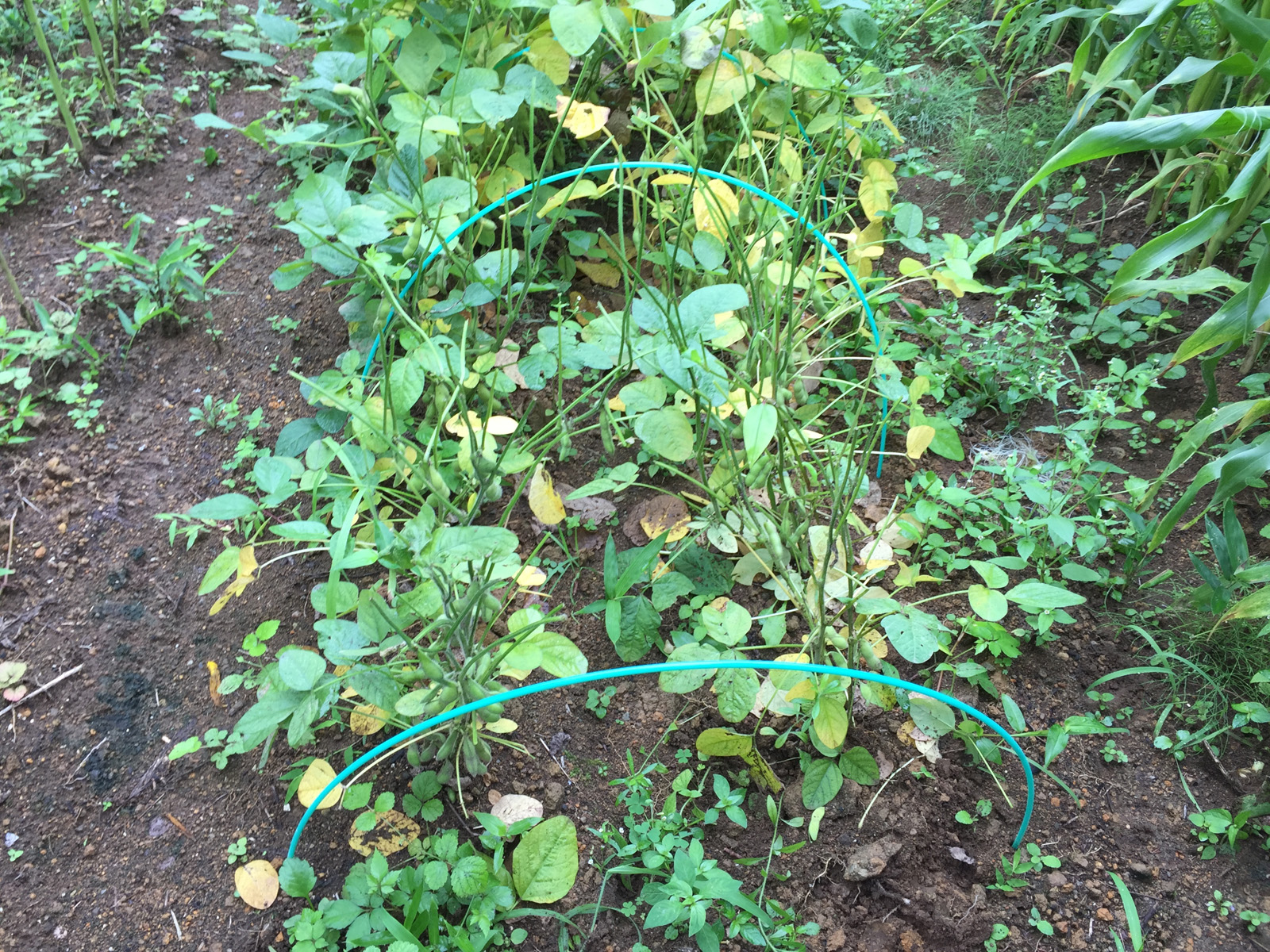 やはり、( ̄□||||)枝豆の葉っぱを食われてたかぁ、、、もう、収穫だね!!