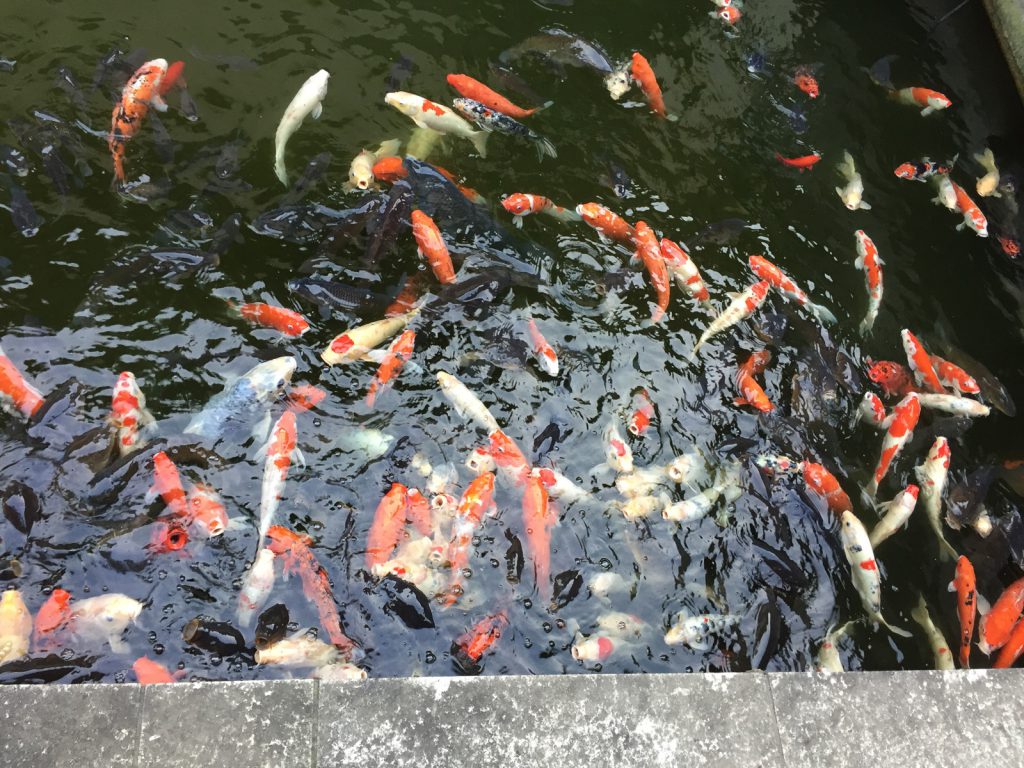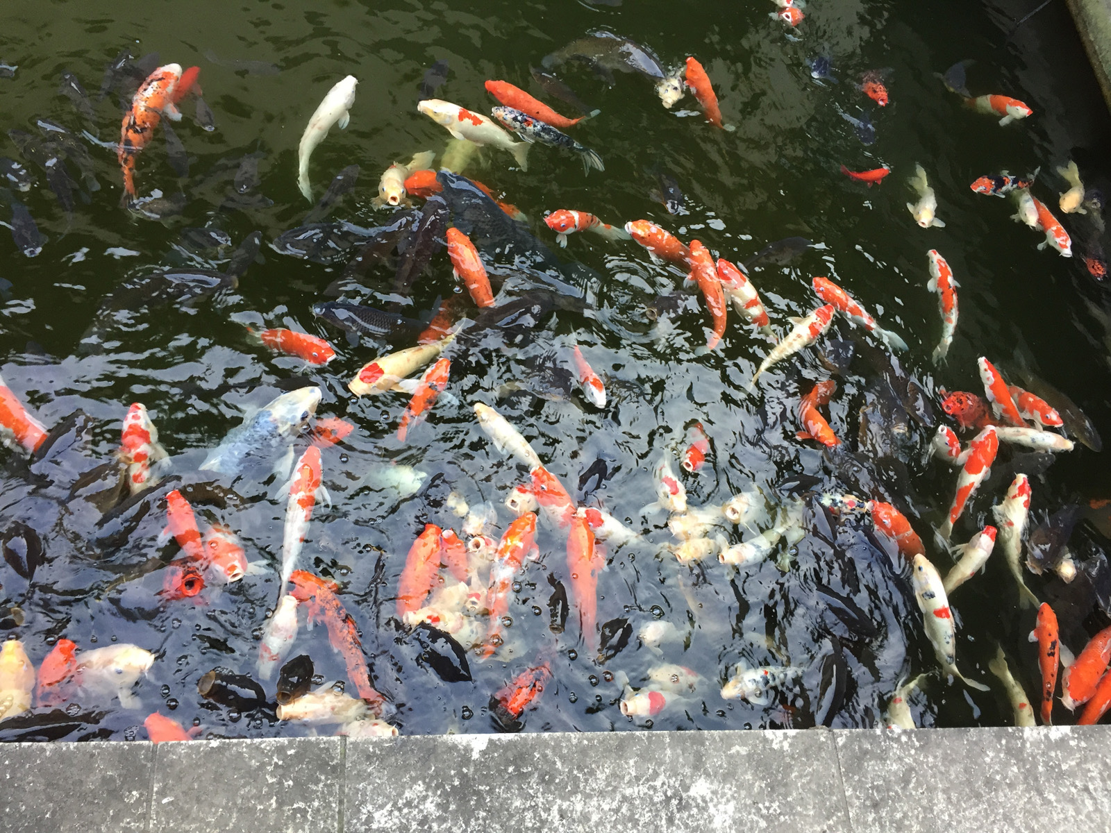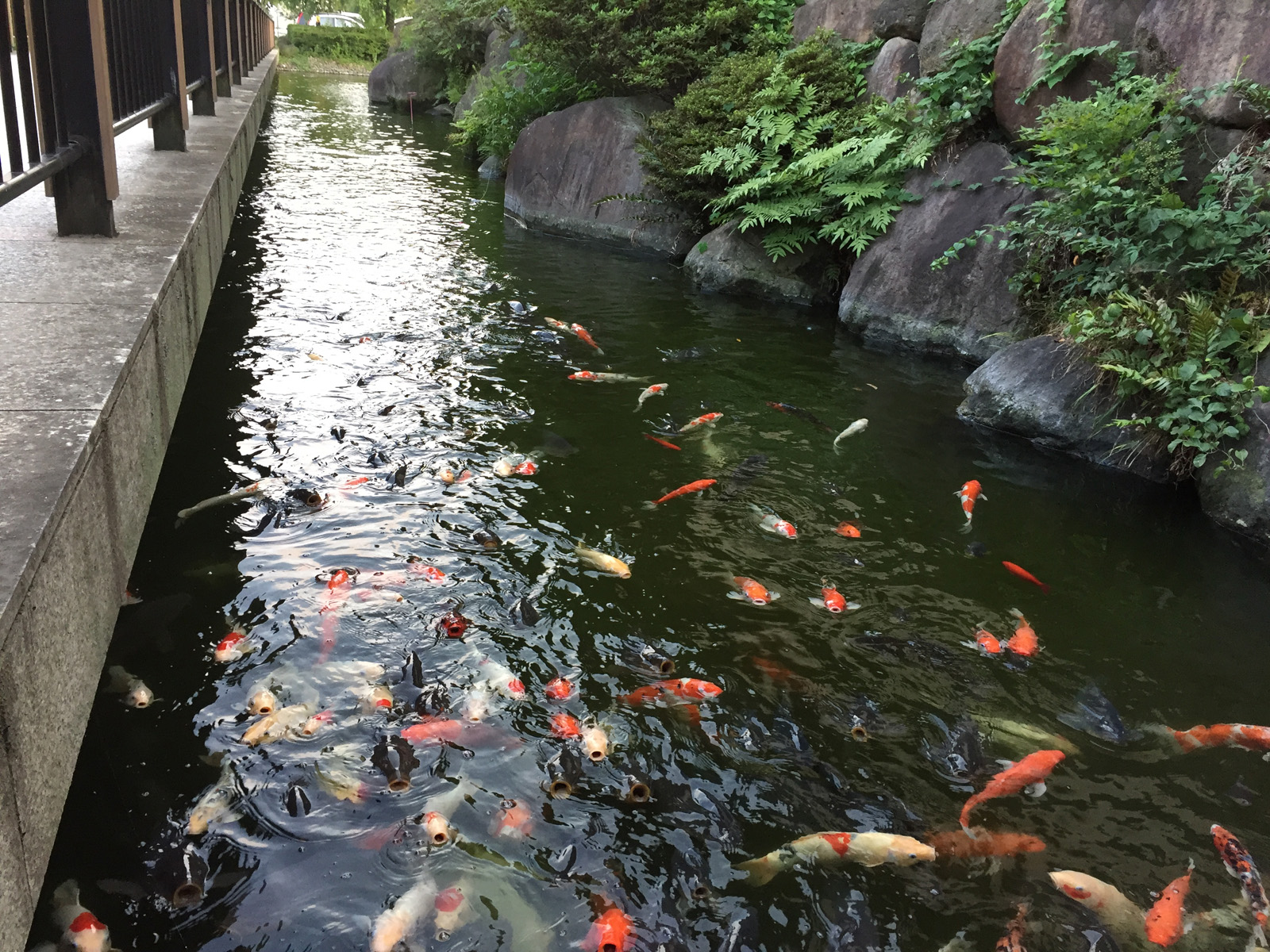 鯉は、、、人気を感じて、覗き込むと、口を開けて集合なのだ(^▽^;)