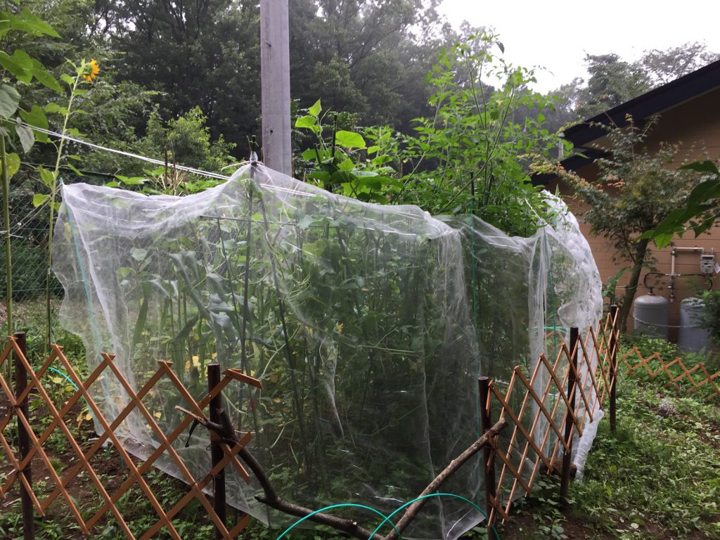 シカ対策に、応急処置として、寒冷紗で覆ったのだ。