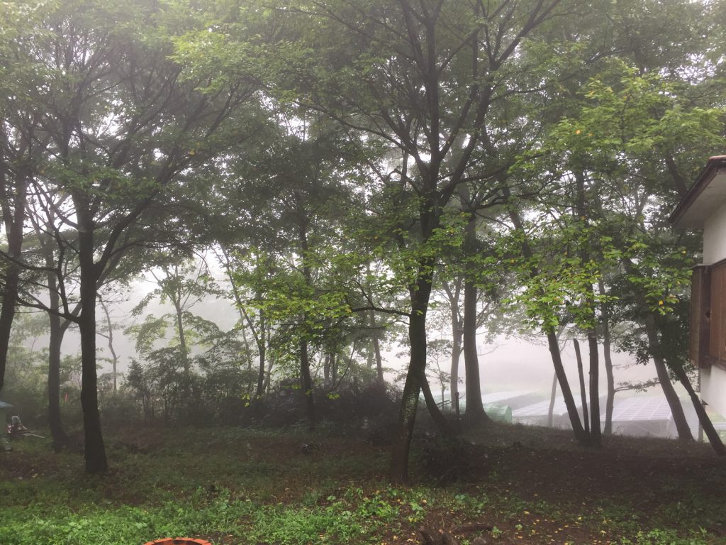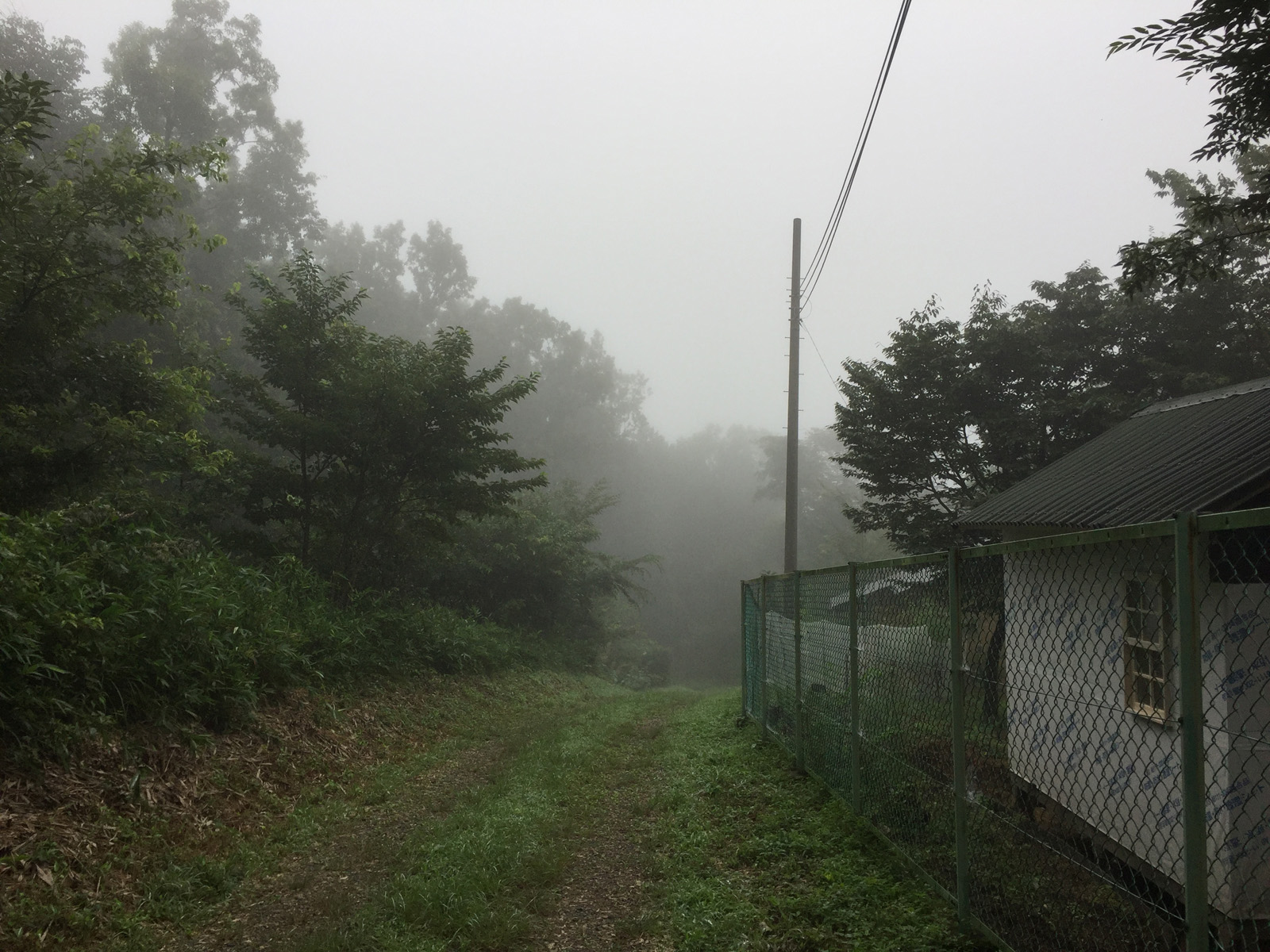 山の中腹辺りのこの辺は、、濃霧注意報!!テキに視界、マジゼロなのだ、