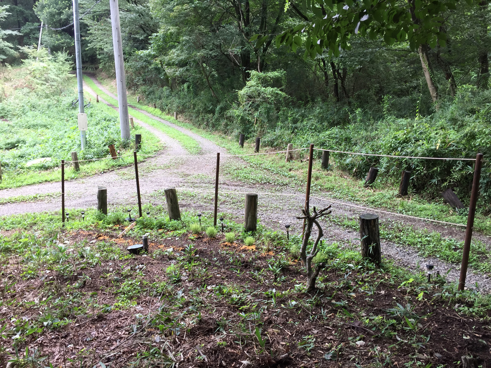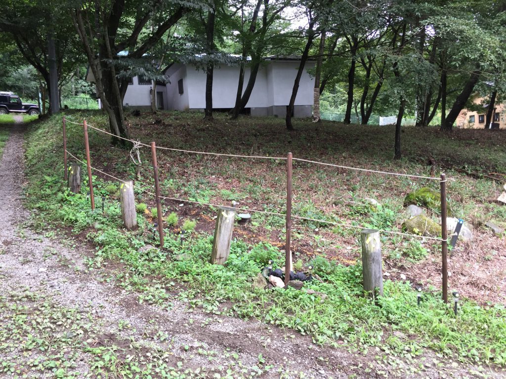 朝イチで、杭を買い出し、ロープで柵ってみた(-。-;)