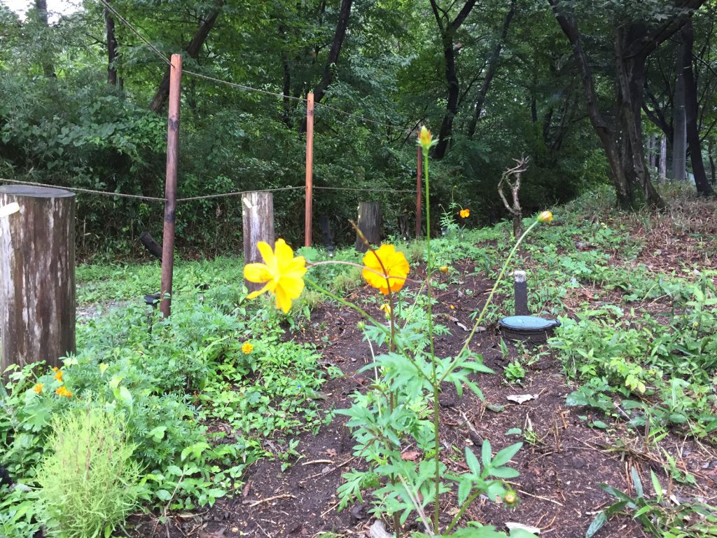 黄花コスモスが3輪だけ、開花してたのだ___//