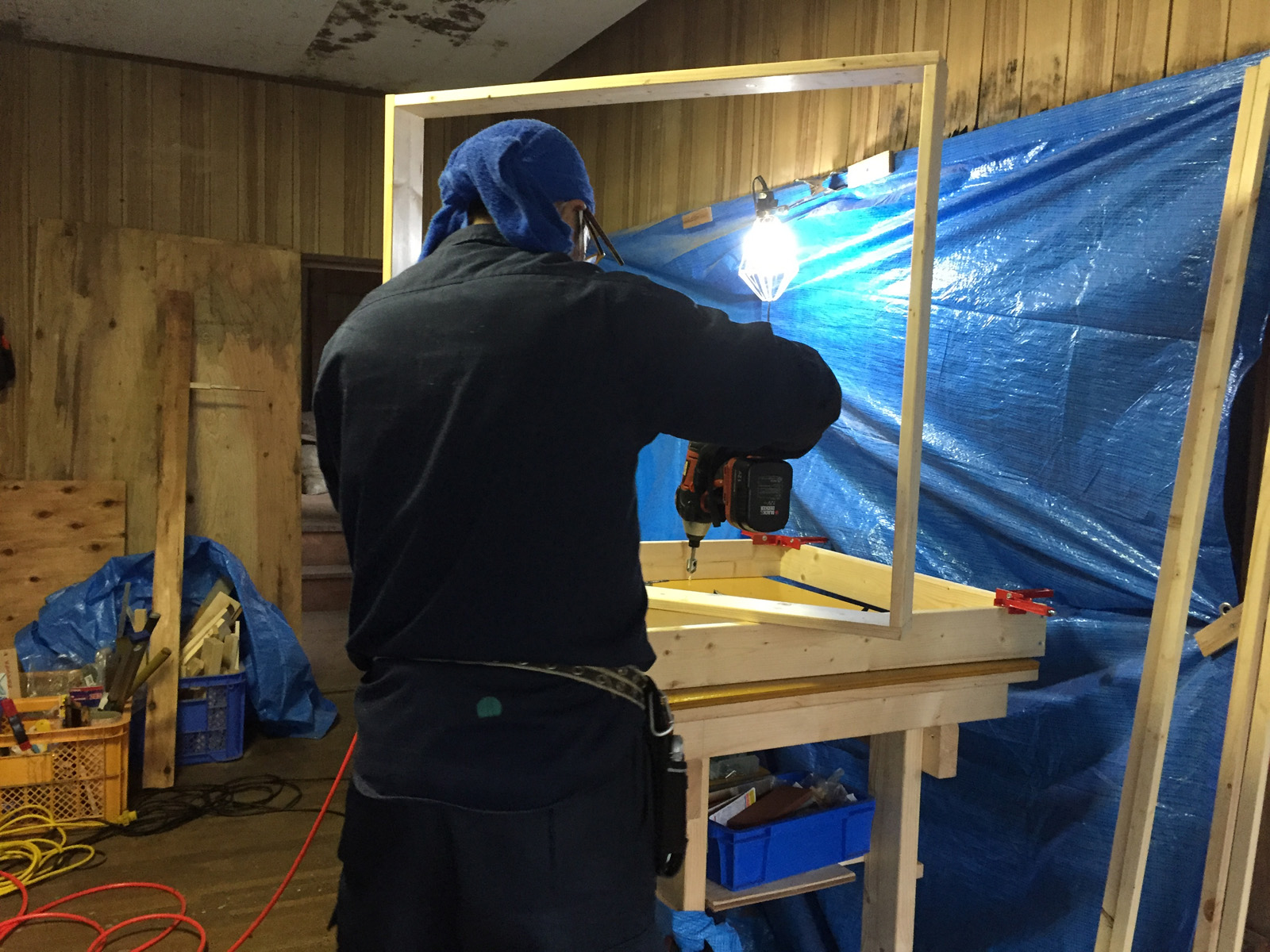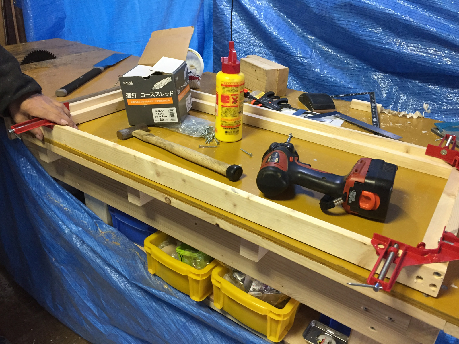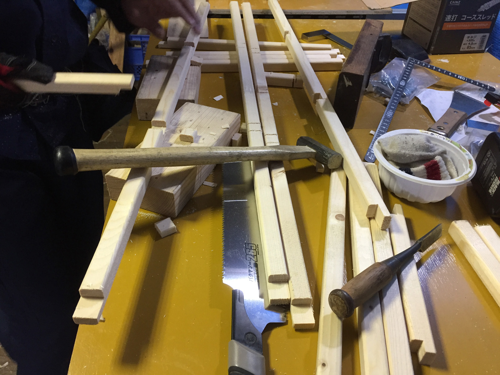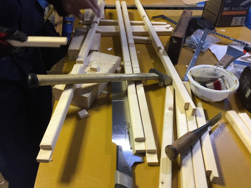 両端を半分削って、溝をつくり、長いものと短いものをつくって