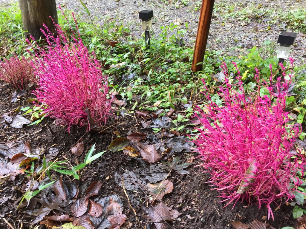 敷地内のコーナー箇所のコキアも、鮮やかなピンクになってたのだ(o^-^o)。