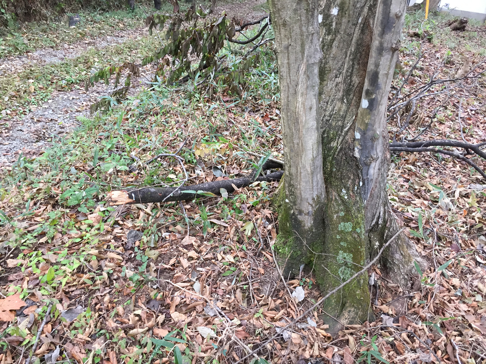 あちこちに折れたモノなのか、飛んできたモノなのか、