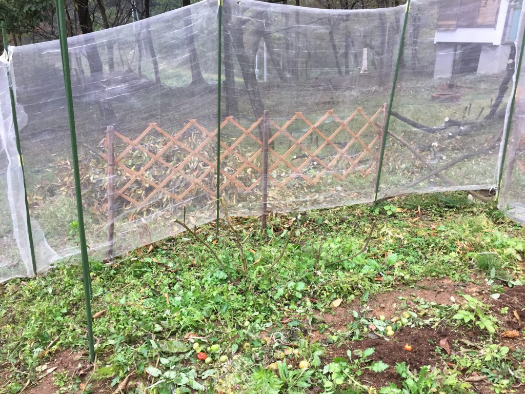 柵も立て直して、トマトもあきらめ、切ってしまった( ̄ヘ ̄)