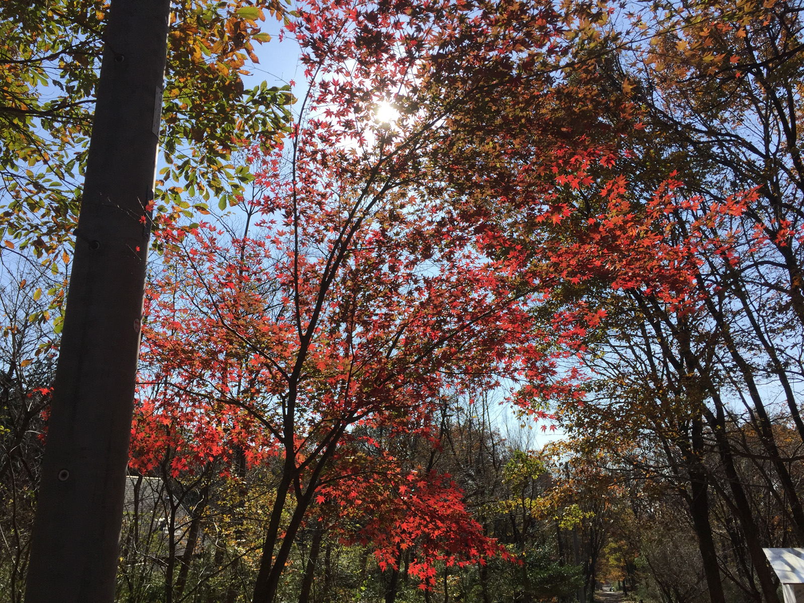 もみじの赤が日射しに照らされて(⌒-⌒)う〜ん、初紅葉気分//全開でぇ___