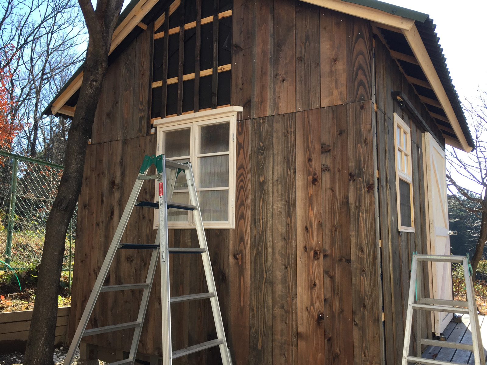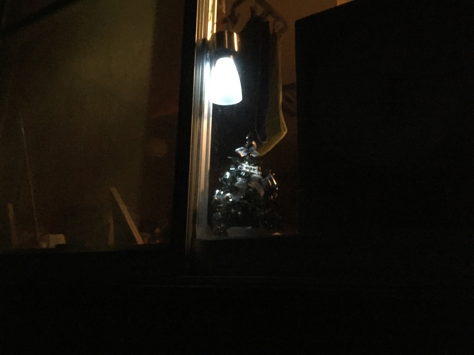 そして、ボロボロの古屋の窓に、ミニツリーにも(V V ;;)。