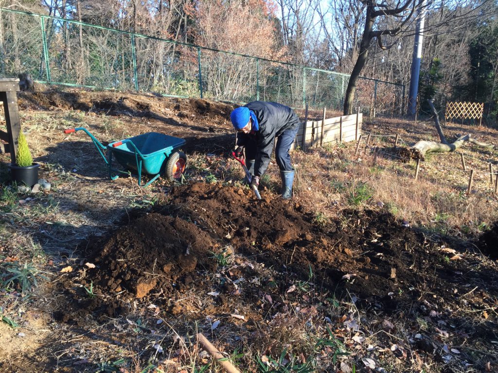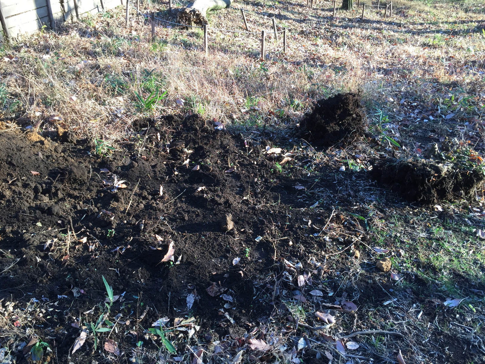 鍬が壊れたけど、2株を掘り、ここに土を盛って