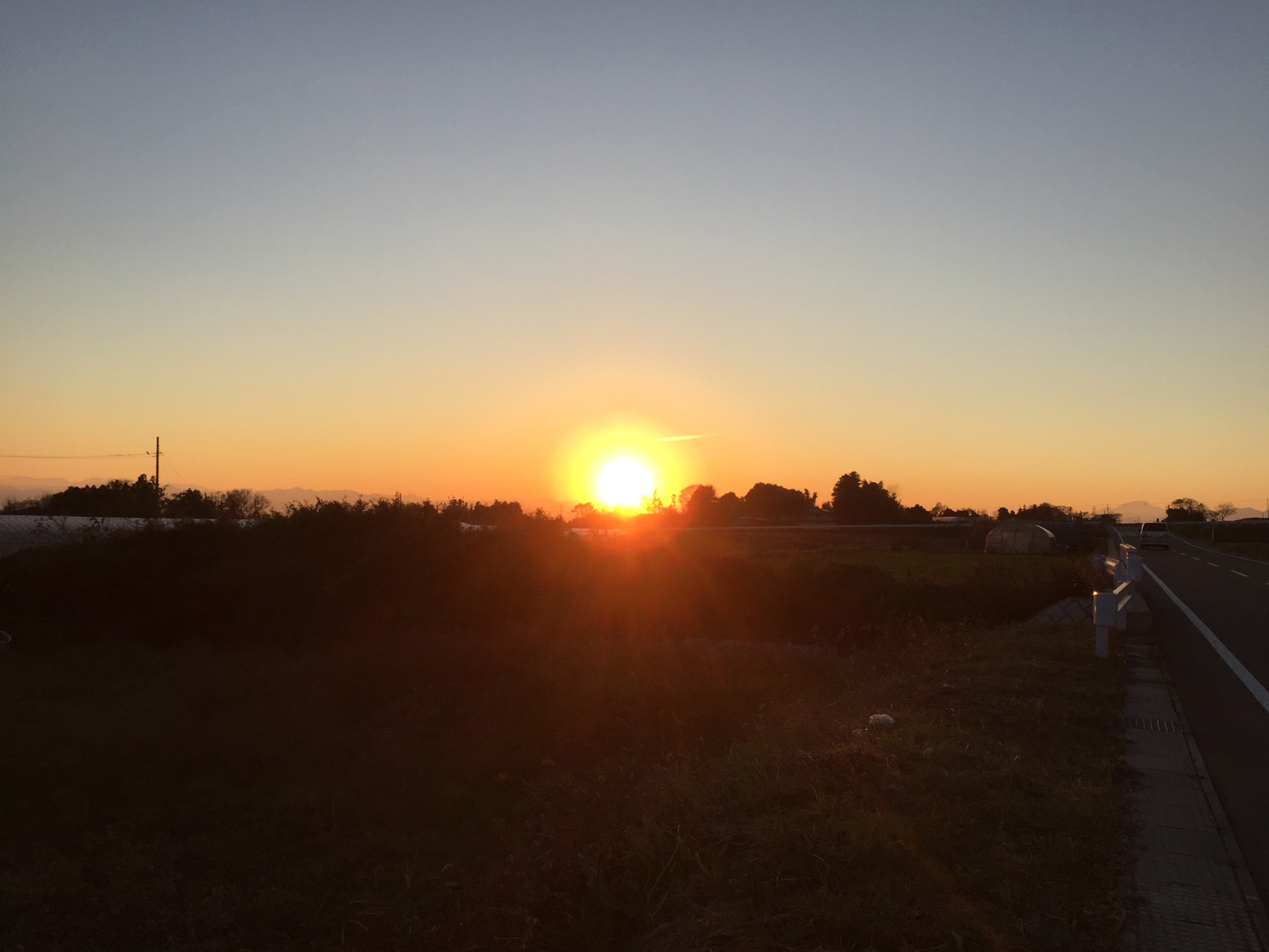 温泉へ行く途中、、、こんな夕陽に、ありがとう&お疲れデス。。
