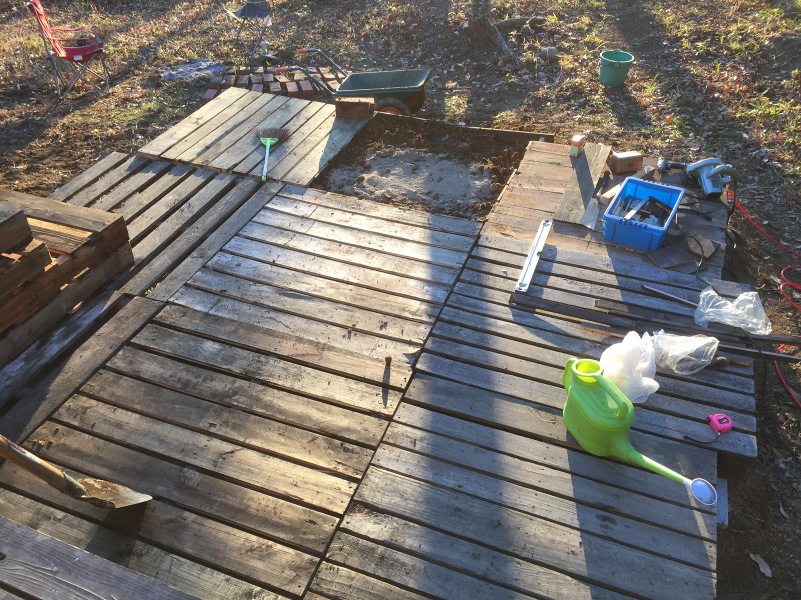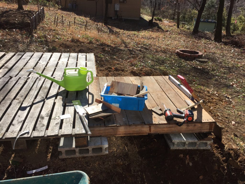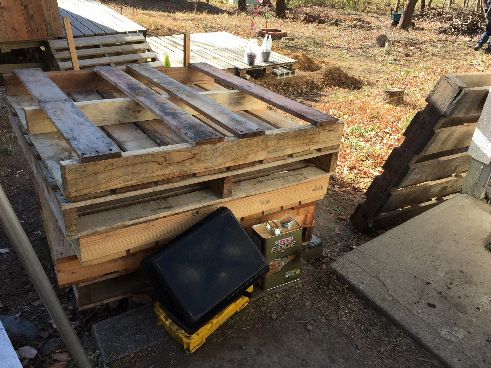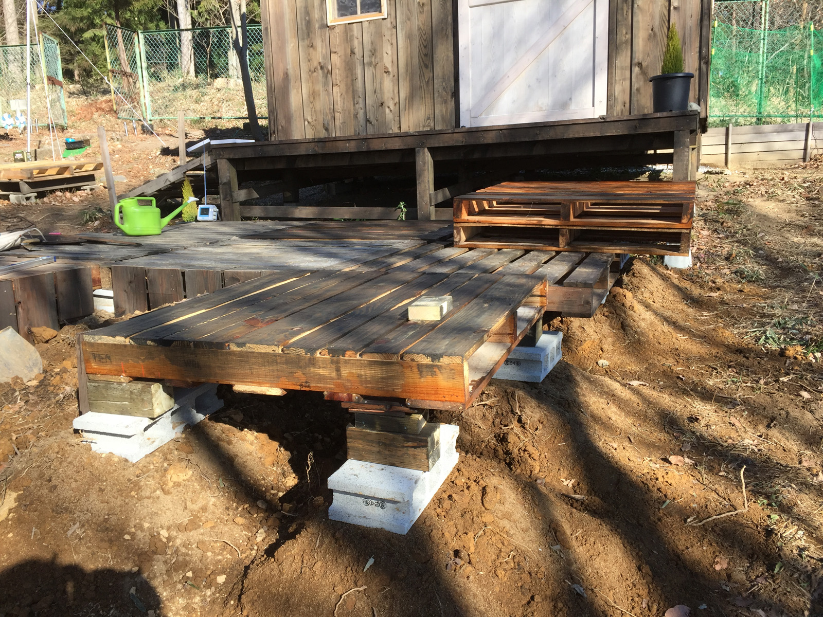 今日は、デッキを完成させるため、温存してた廃パレットを運び出し、