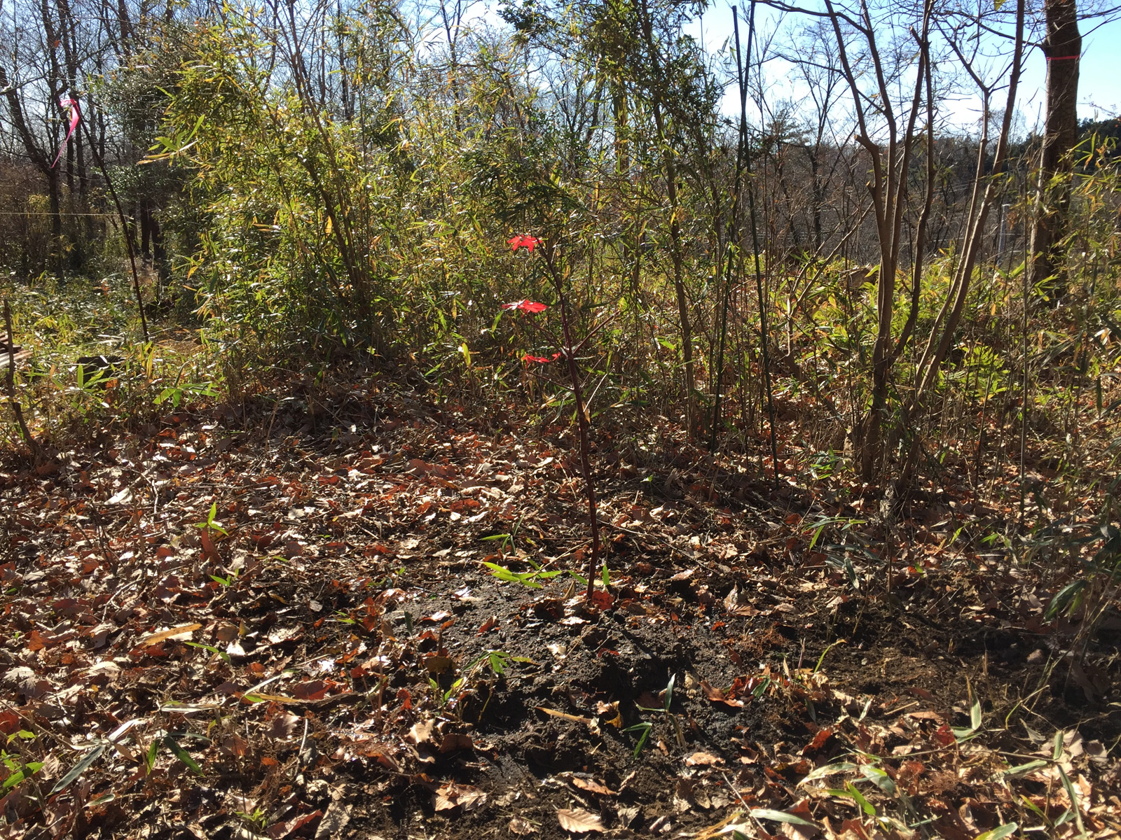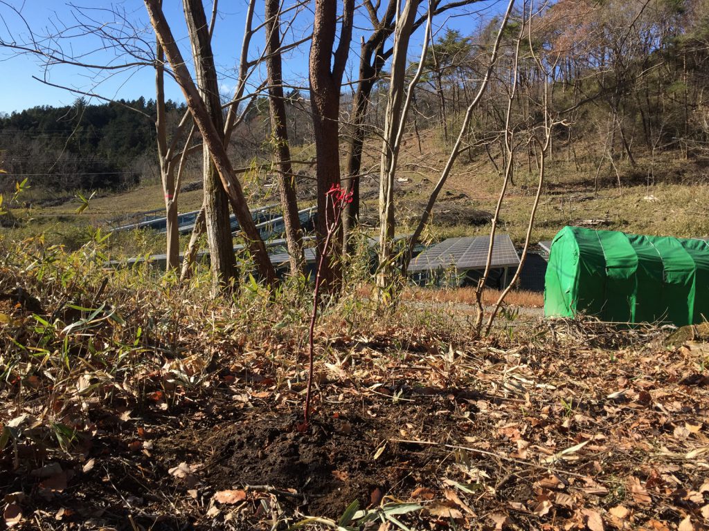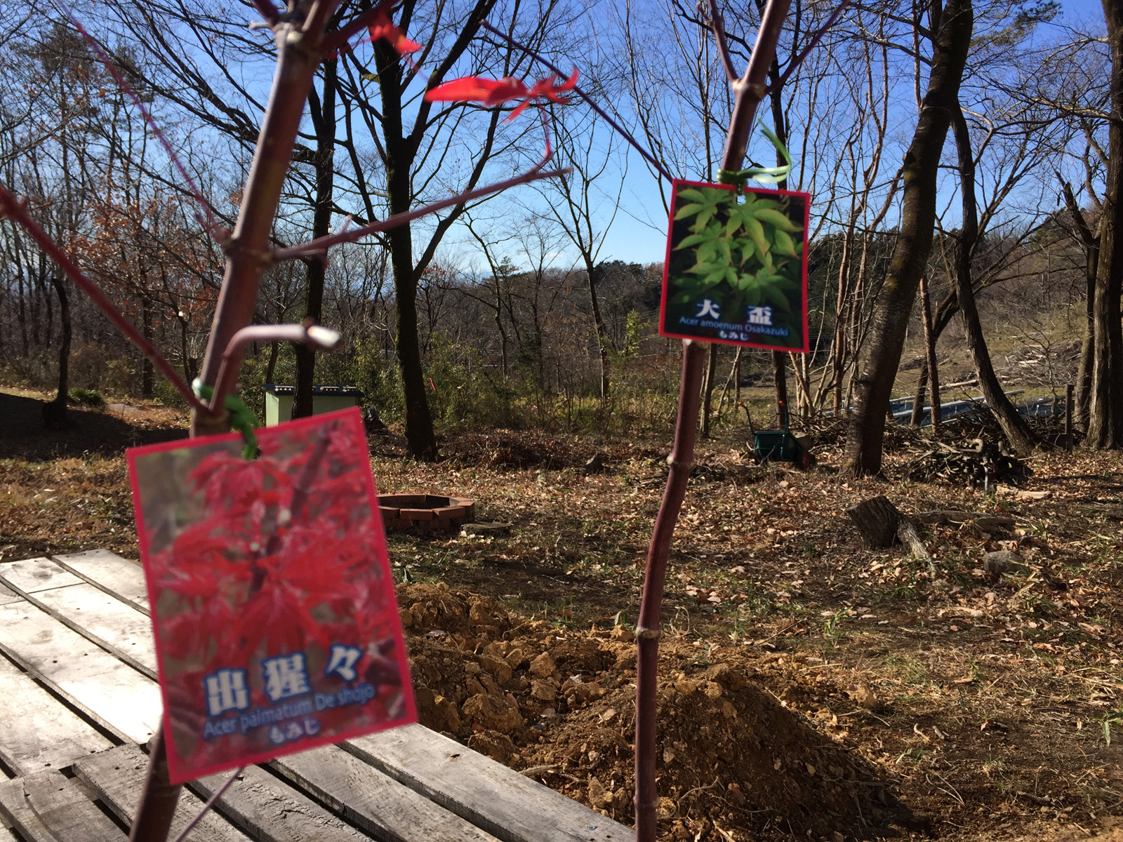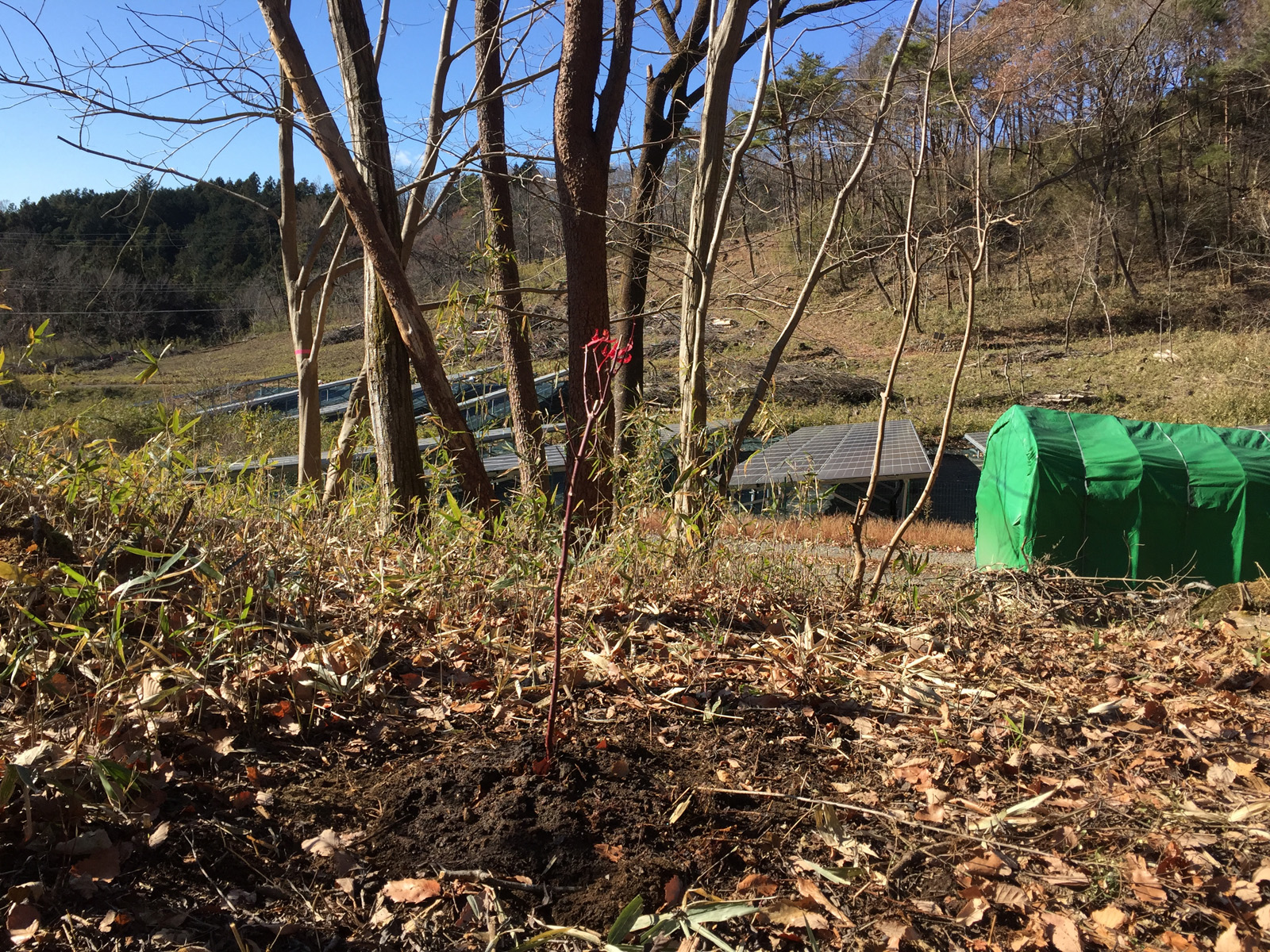 uriは昨夜、PKで買ったカエデの苗を。先の境界の辺りへ。。