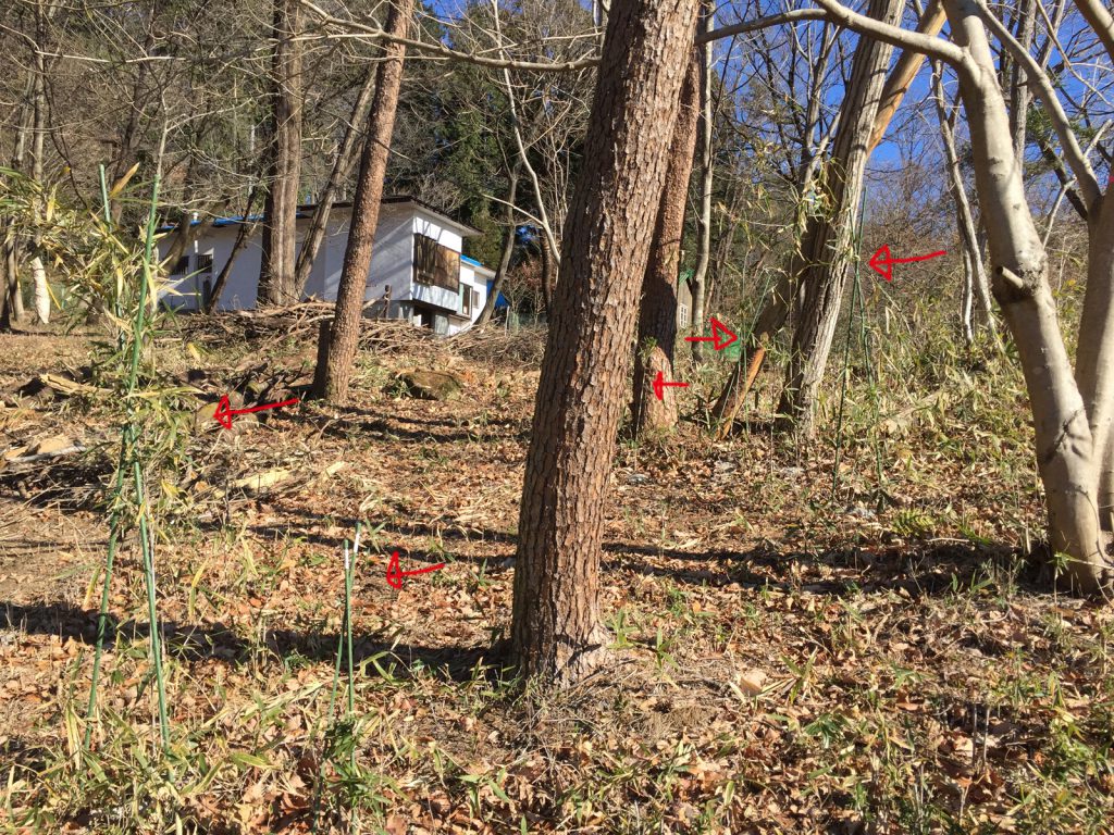支柱で支えてみたんだけどね、、、(赤矢印)どうなるかねぇ,,,