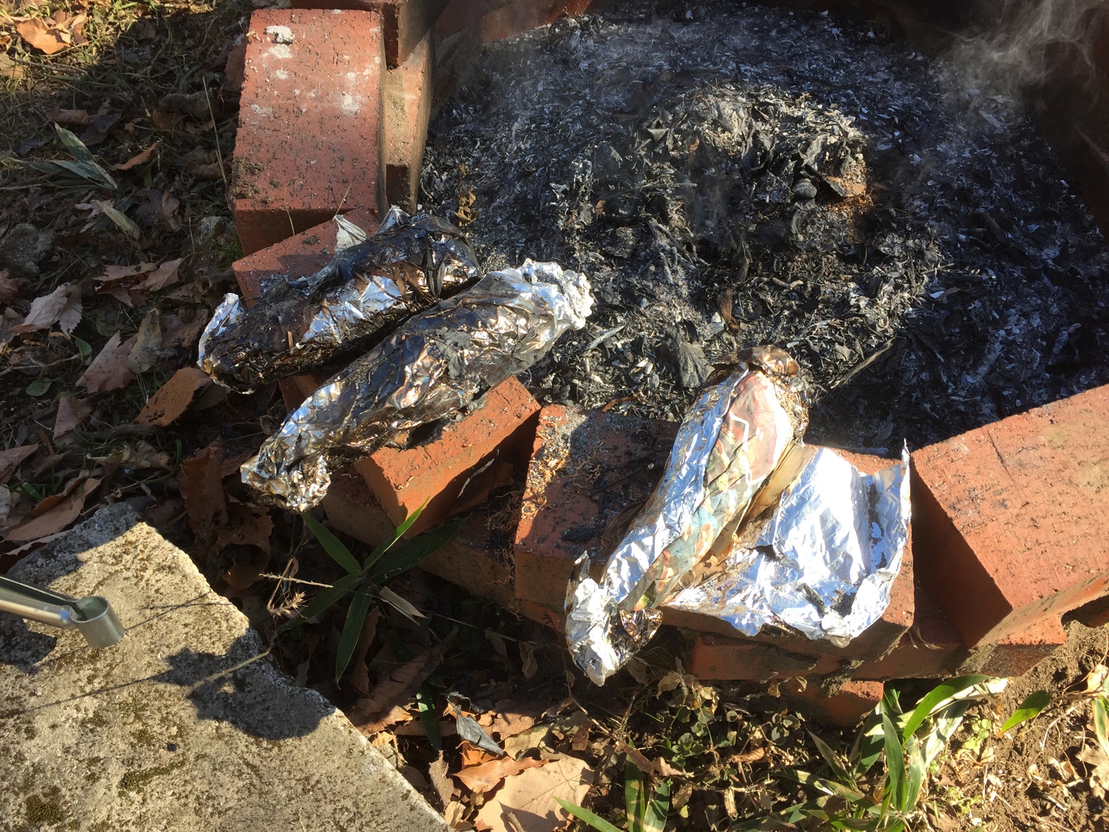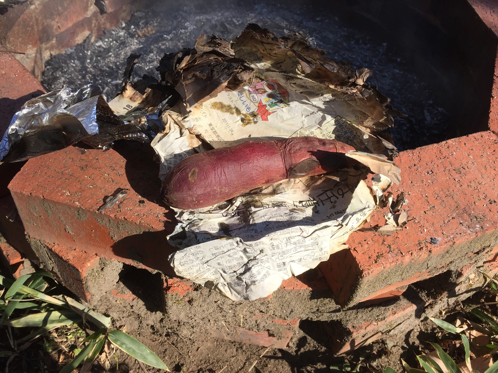 お昼は枯葉で焼き芋を作っちゃいました(⌒¬⌒*)