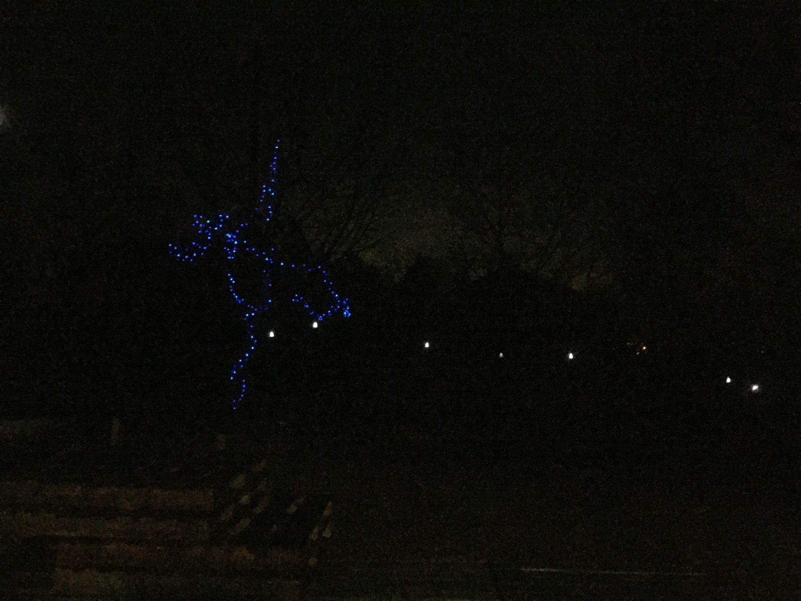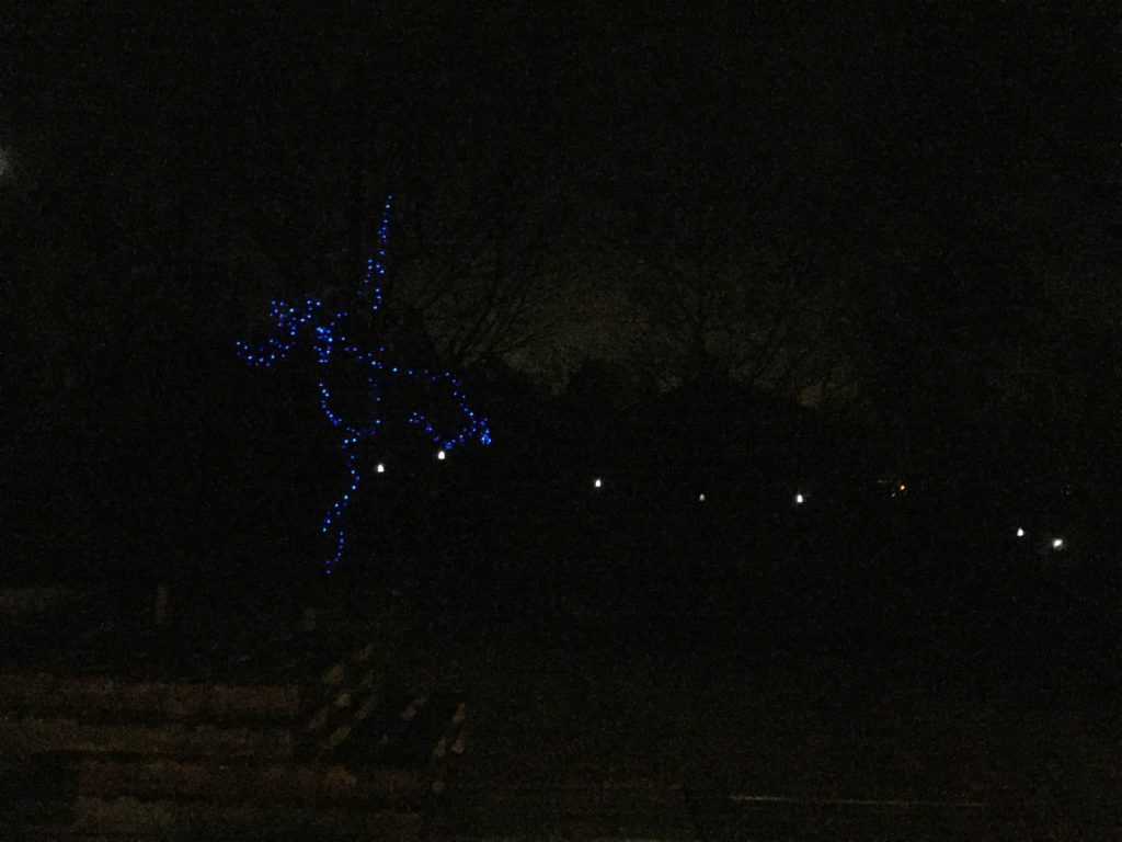 温泉から戻り、ソーラーイルミネーションが、なんとか灯ってるぅ___( ´△`)