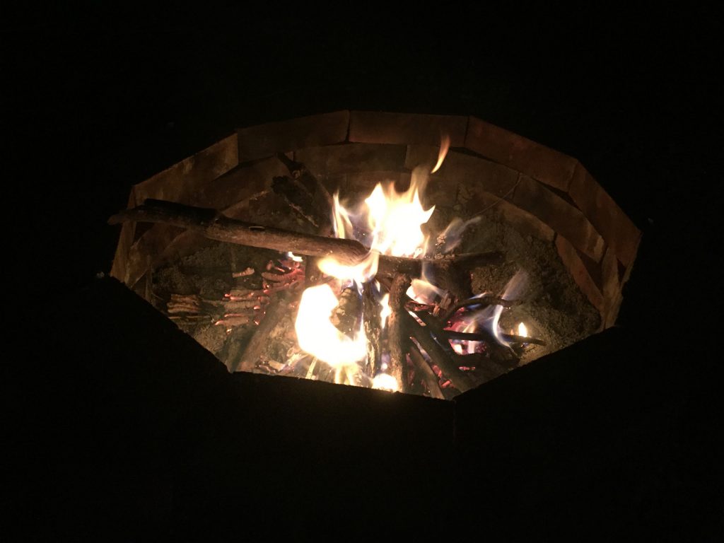デッキに移動した焚き火スペースで、こじんまりとね。。