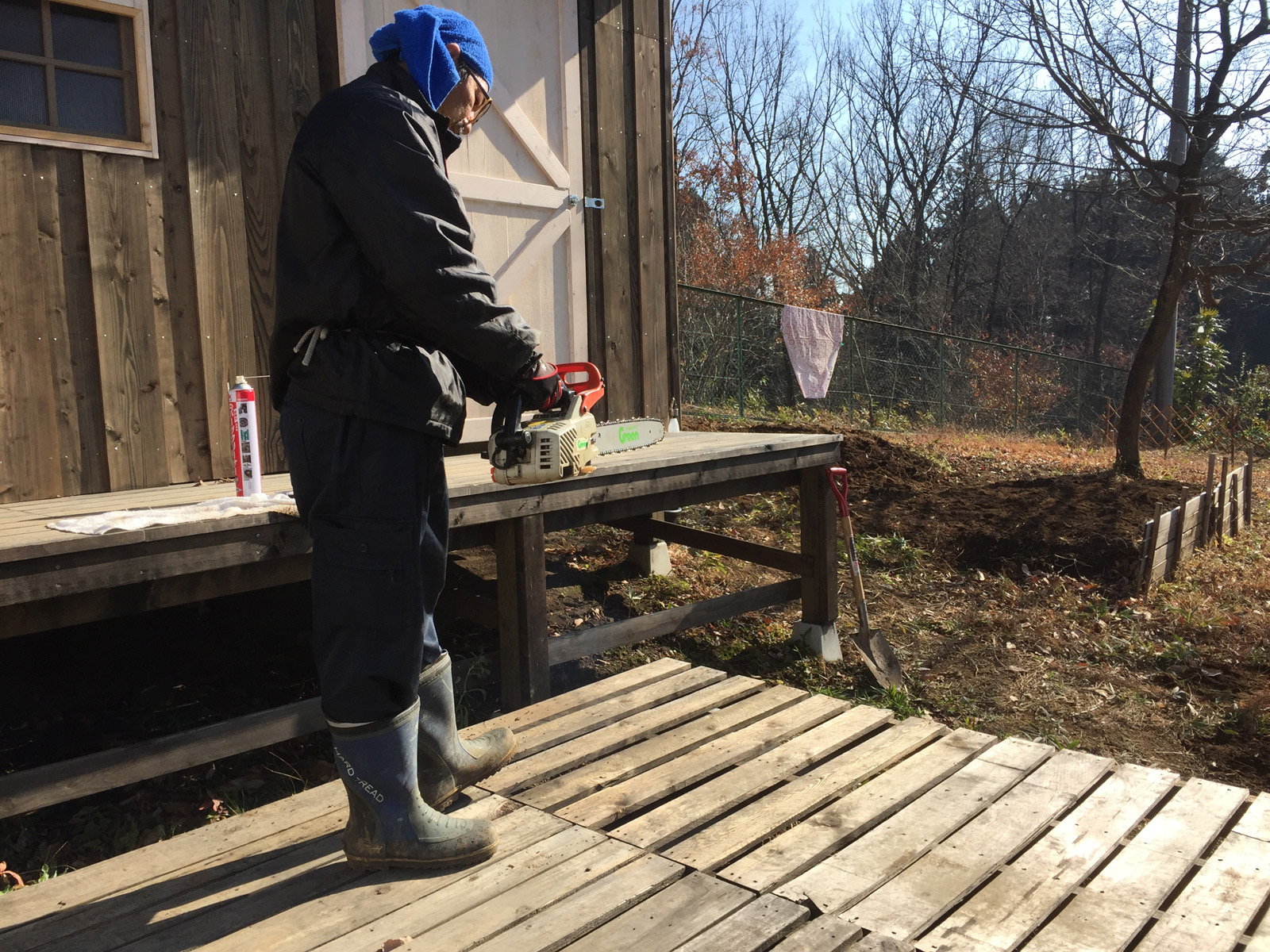 kastuもやっと時間つくれて、早速、倒れた木の片付けだ__/