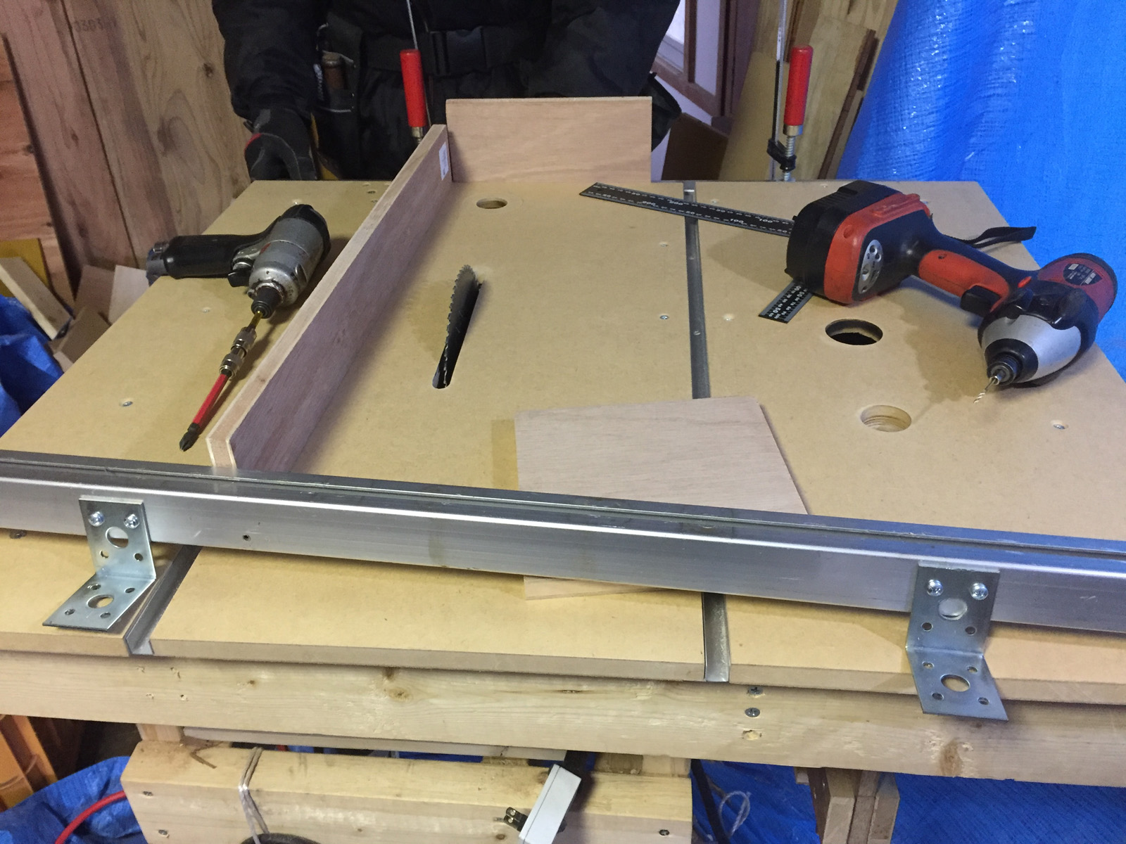 作業台やテーブルソーも運び、