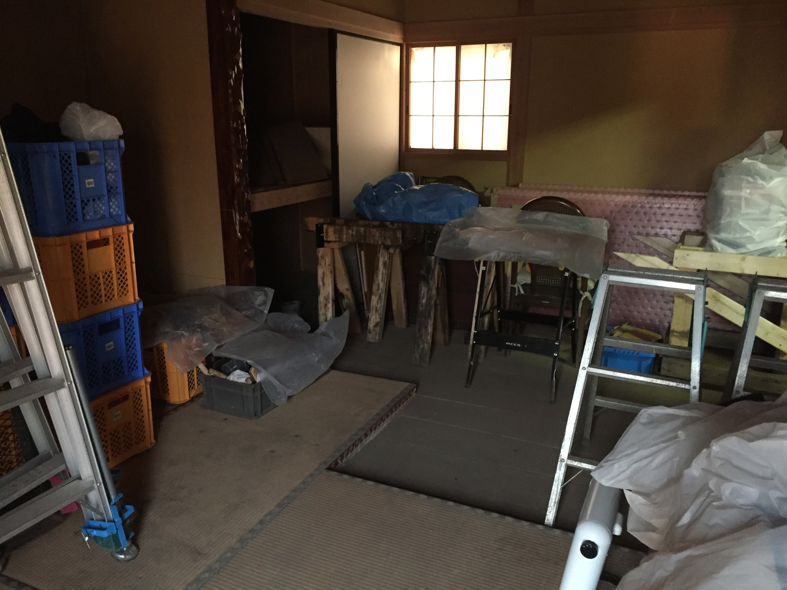 <奥の解体したモルタルのゴミ袋は見ないでください..>
