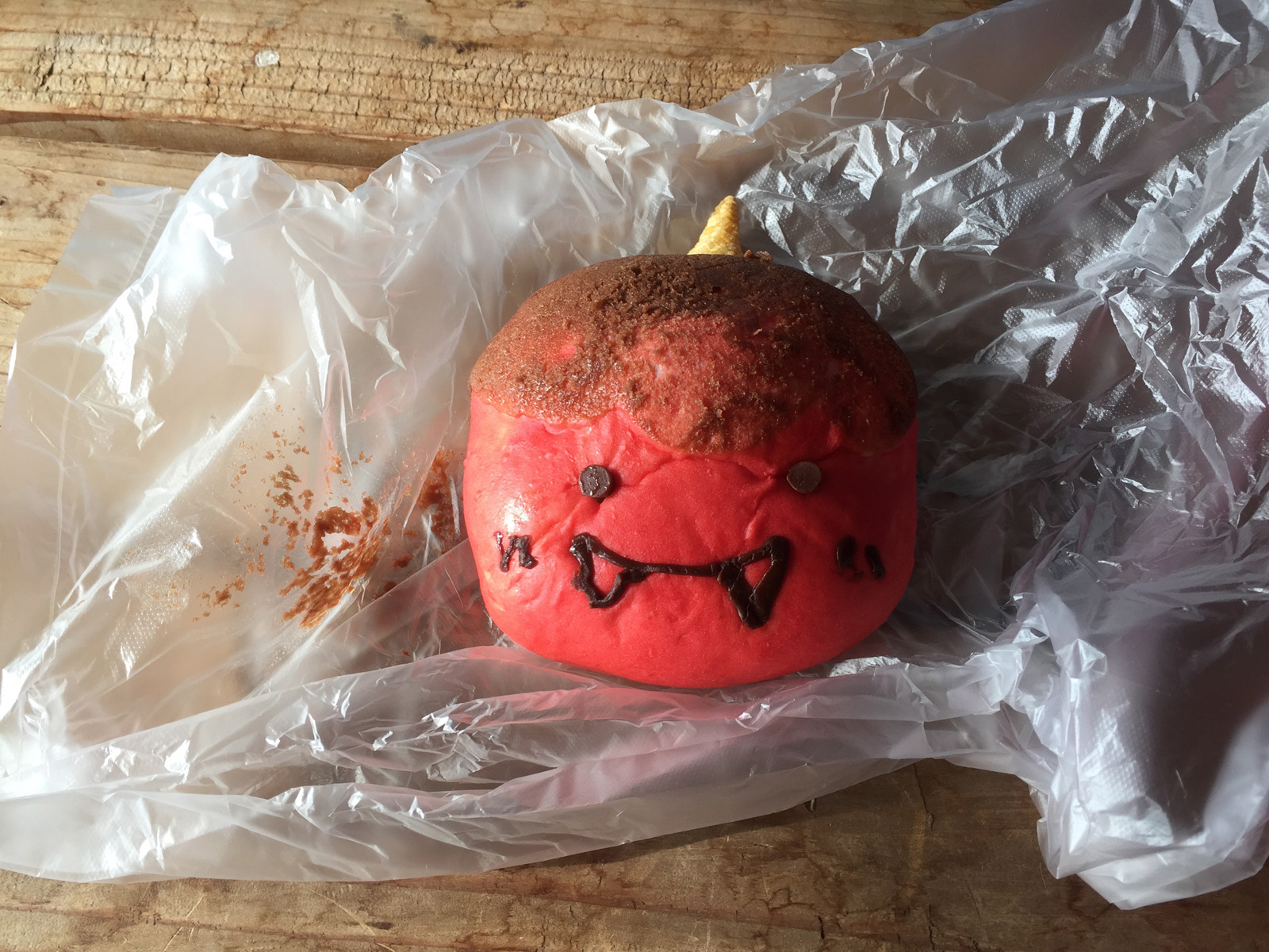 今日は節分ということで、赤鬼パンを食べてからo(^▽^)o