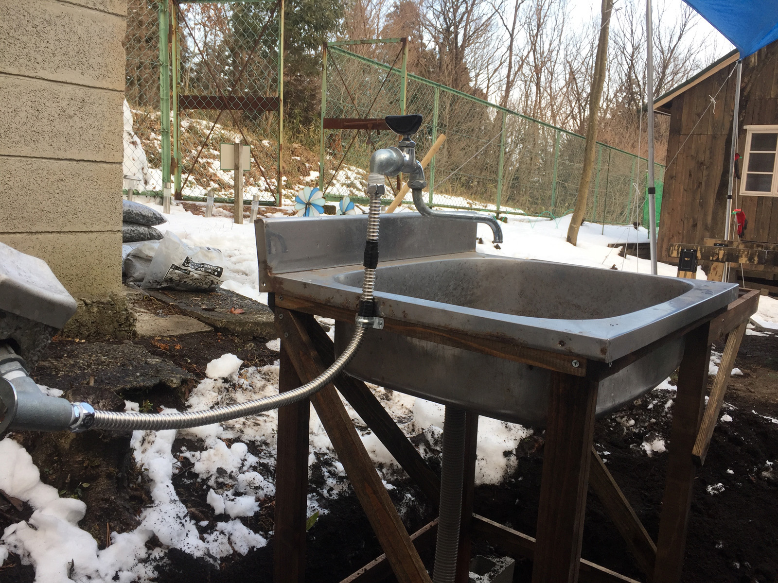uriが、遊んでる間に、katsuは、水場の台を作ってて、これに塗料を塗り、