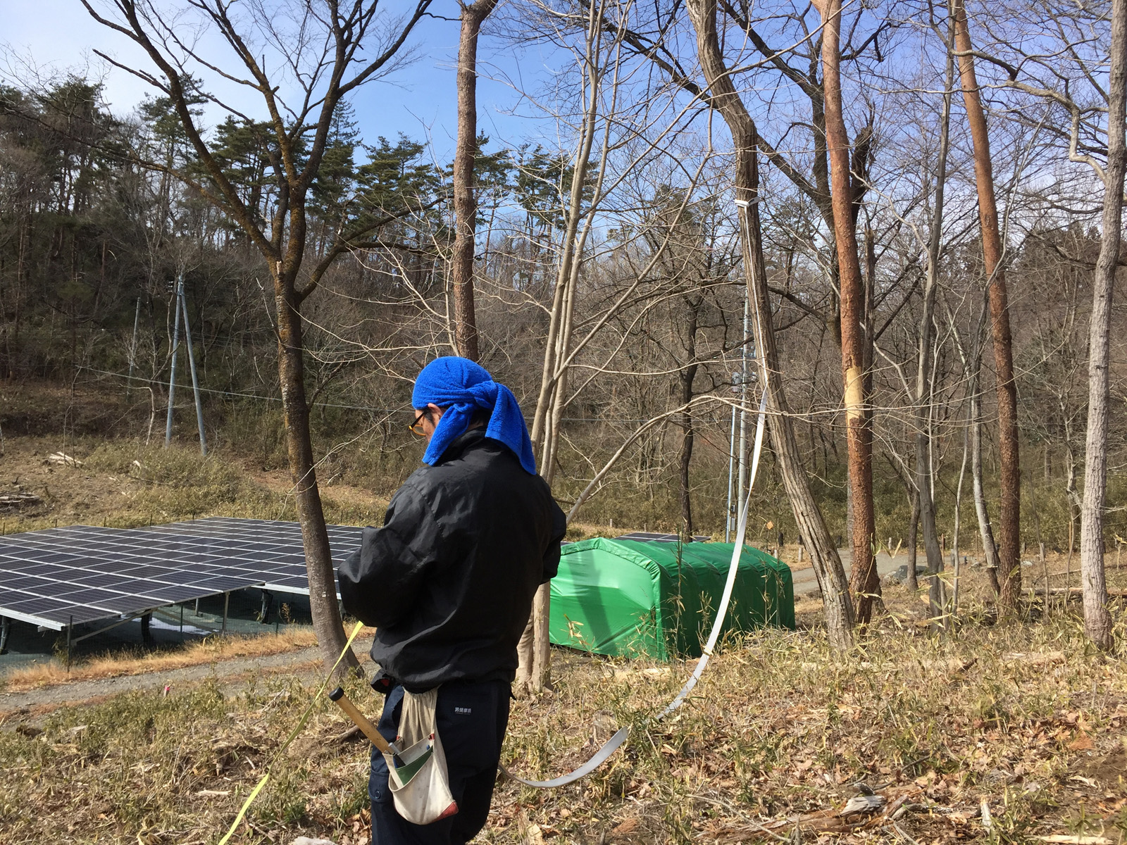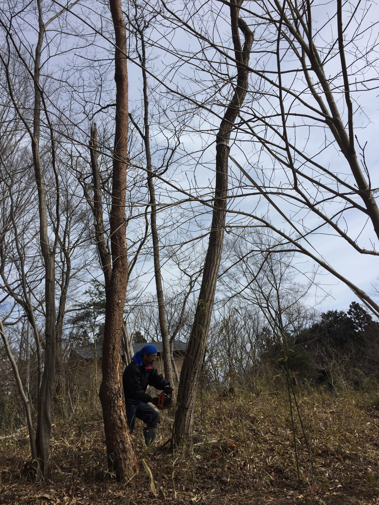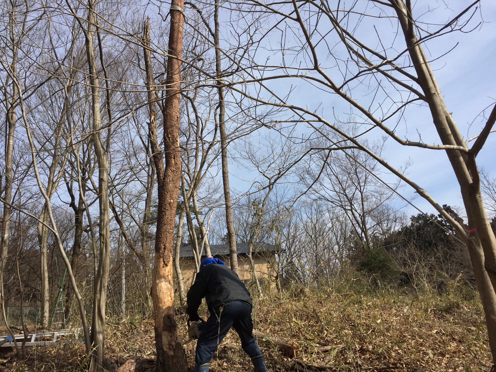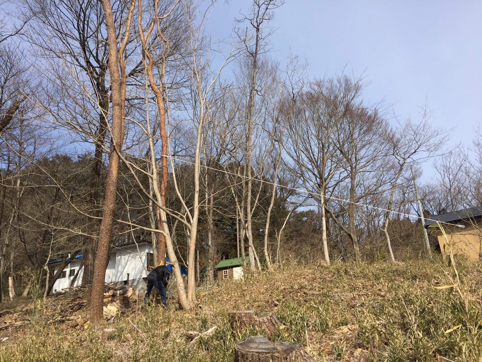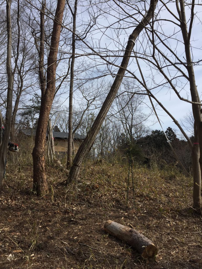 倒す方向にロープを張り__