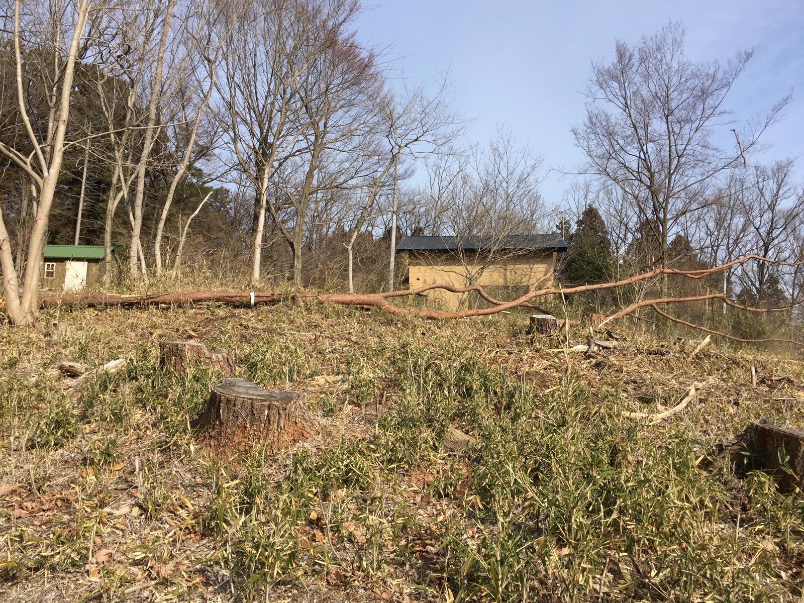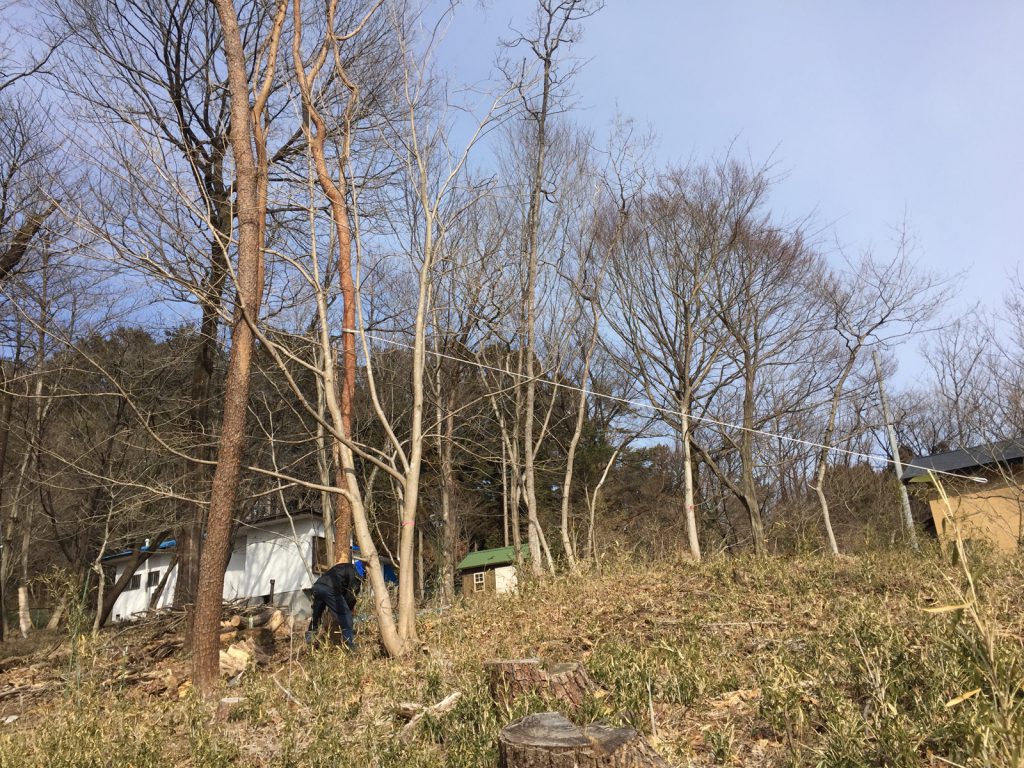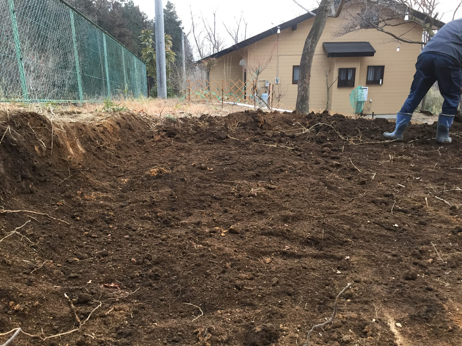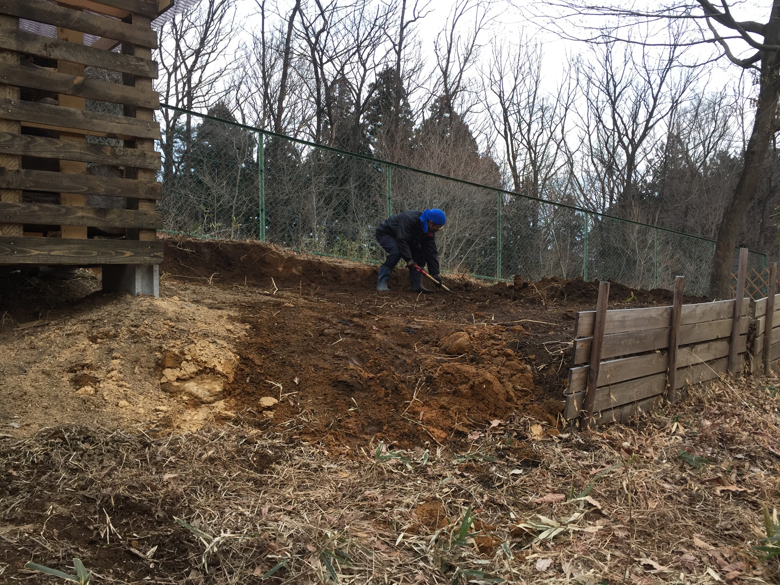 時間も中途半端になったので、小屋の脇の傾斜地を馴らして。。