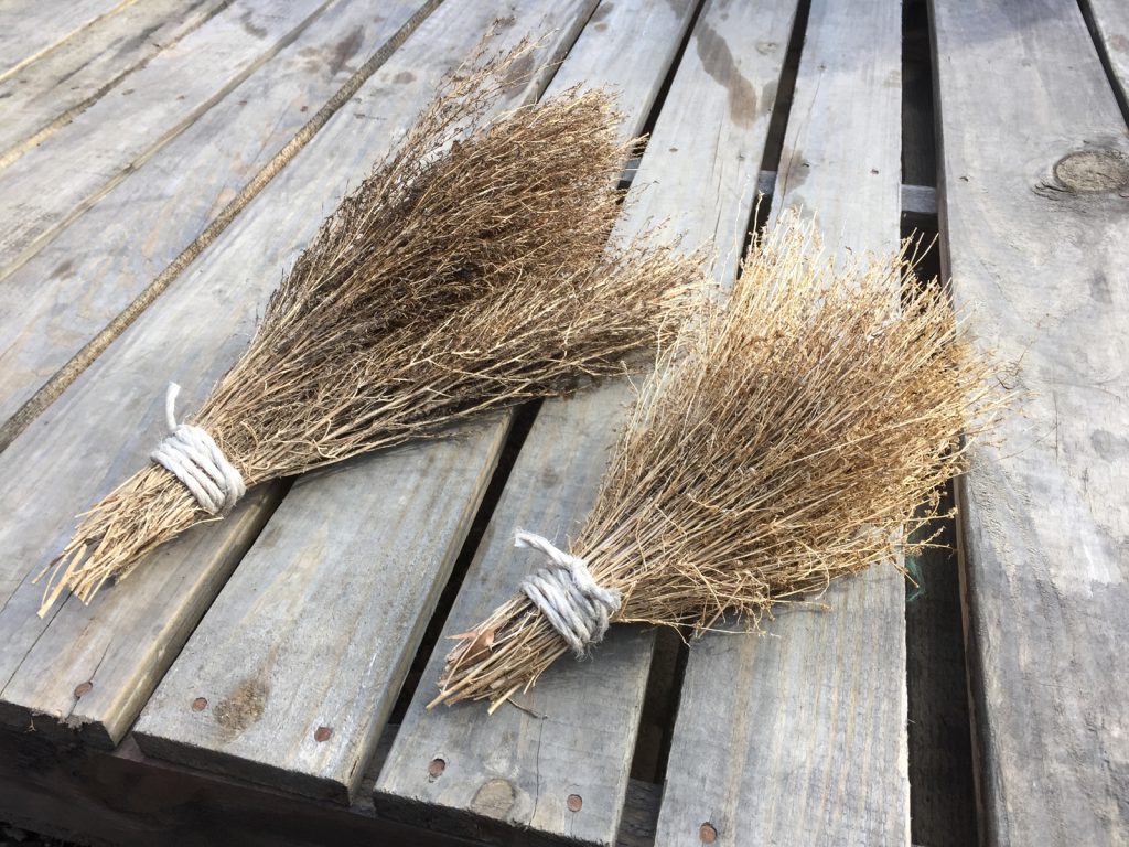 枯れた部分を刈り、ホウキを作ってみた(∩。∩;)ゞ