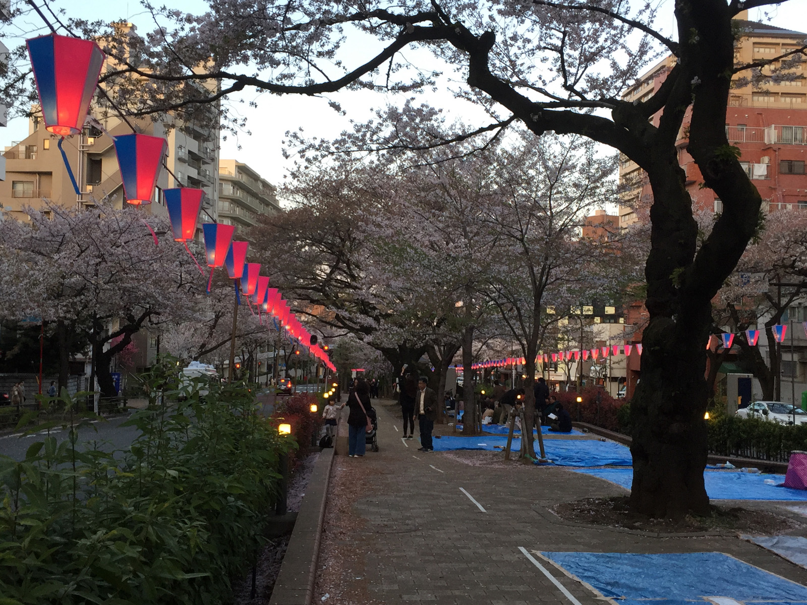 この遊歩道の脇が宴会場らしく、「場所取りは当日のみで!」の張り紙が、、