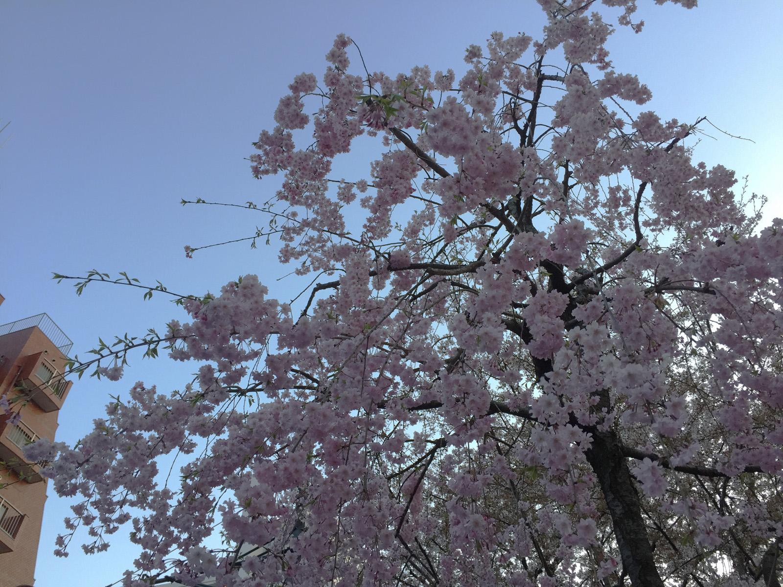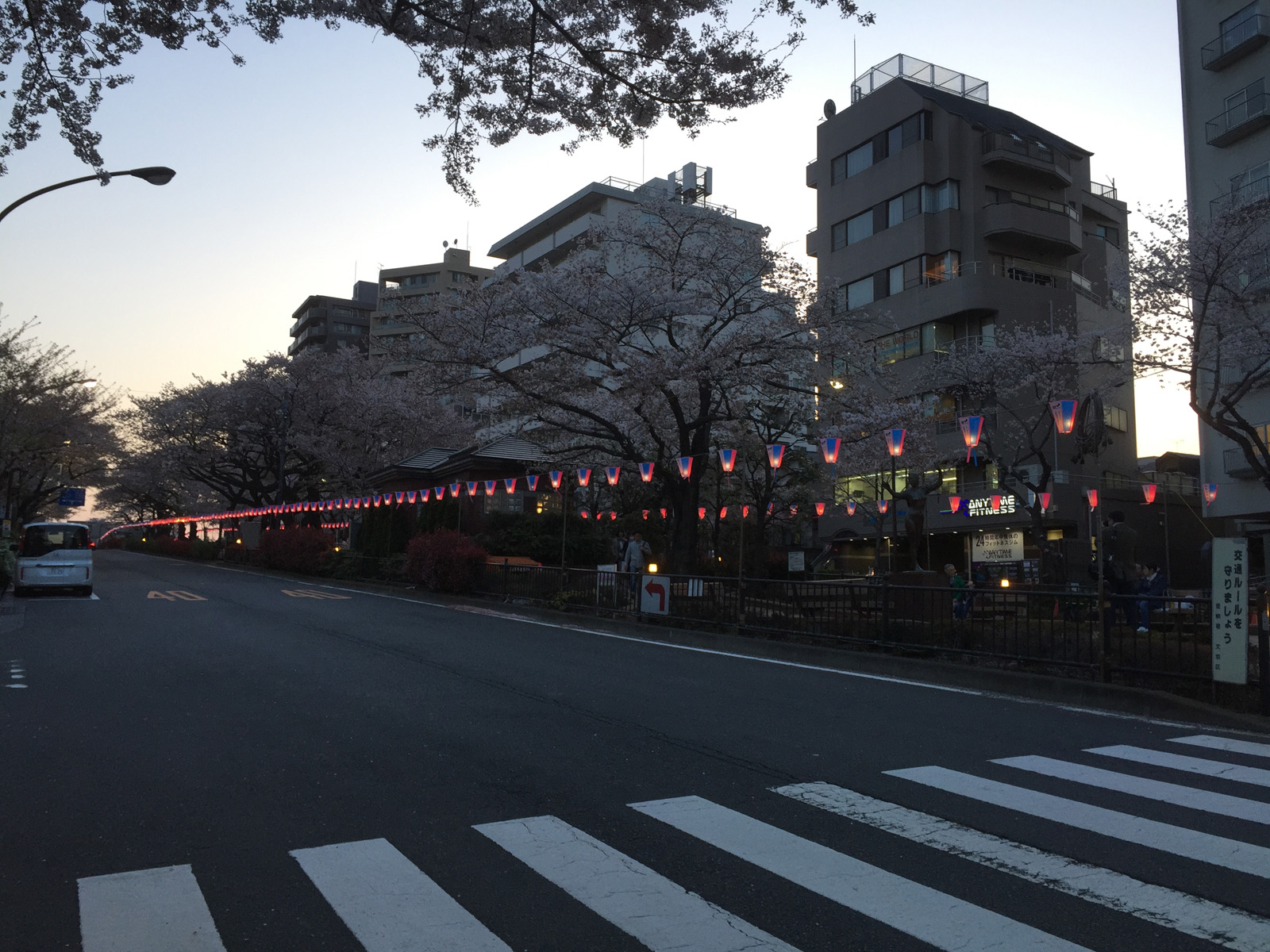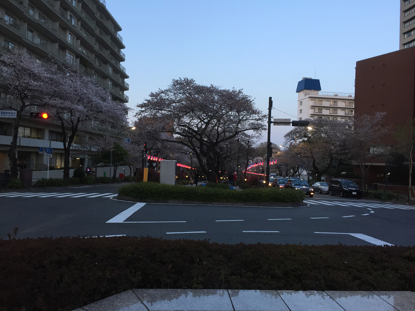 中には、今満開のさくらもあったが、、周りのビルに囲まれてて、、暗い,,