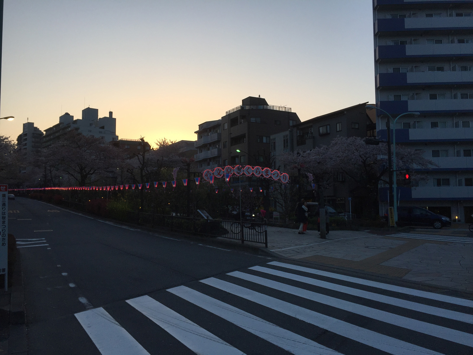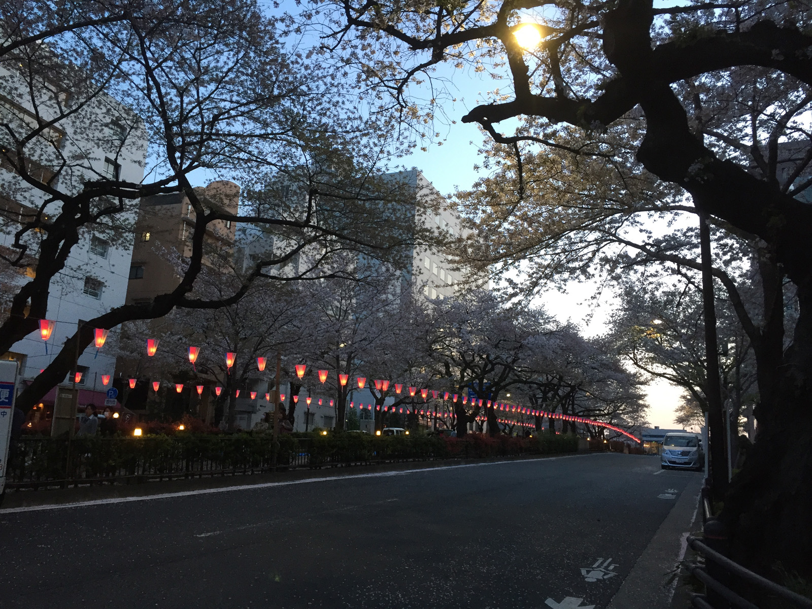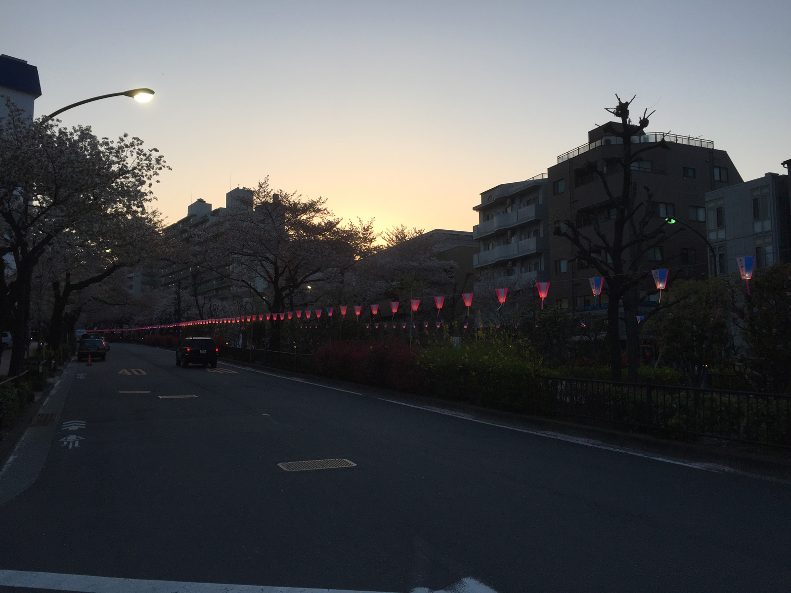 中には、今満開のさくらもあったが、、周りのビルに囲まれてて、、暗い,,