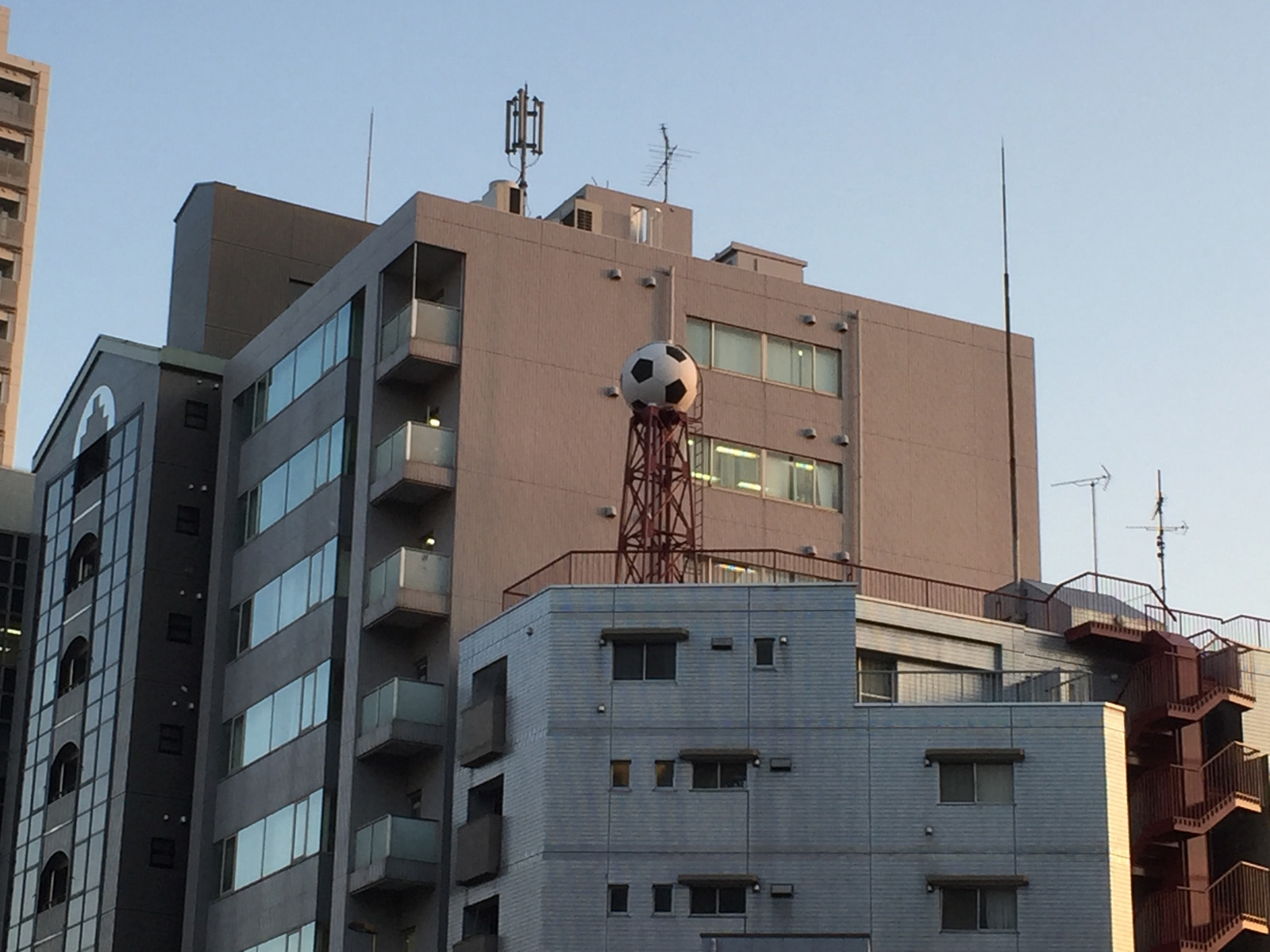 最近、よく見かける、ビル屋上のサッカーボール・・