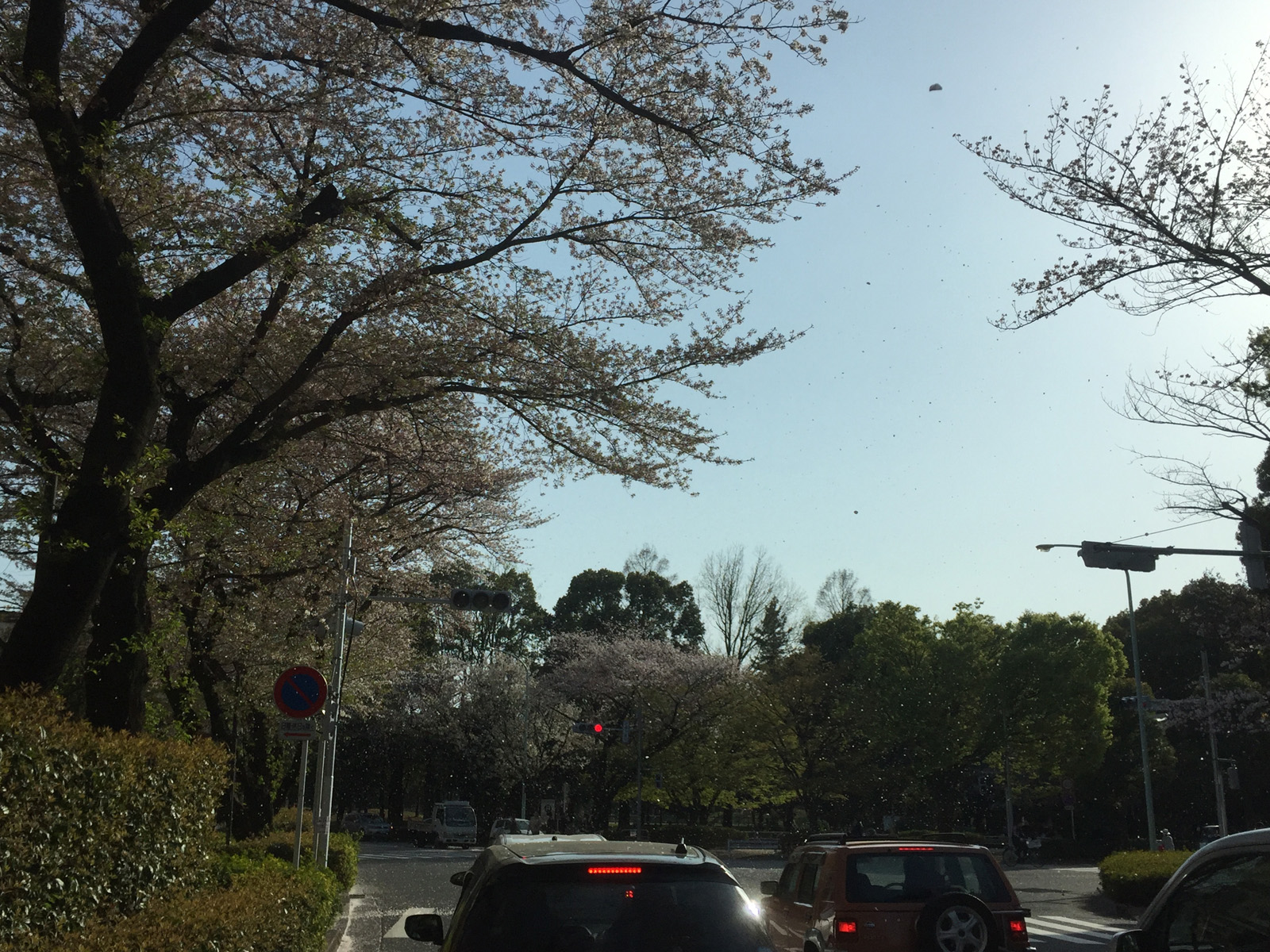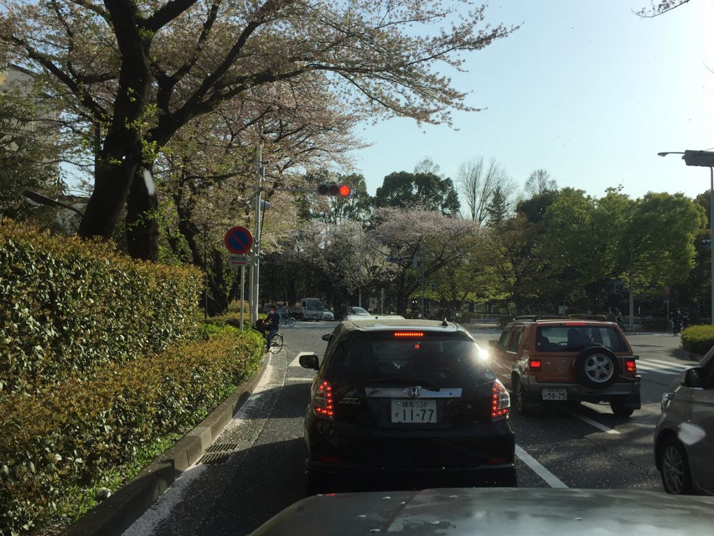 信号待ちで、桜吹雪の一枚∬´ー`∬