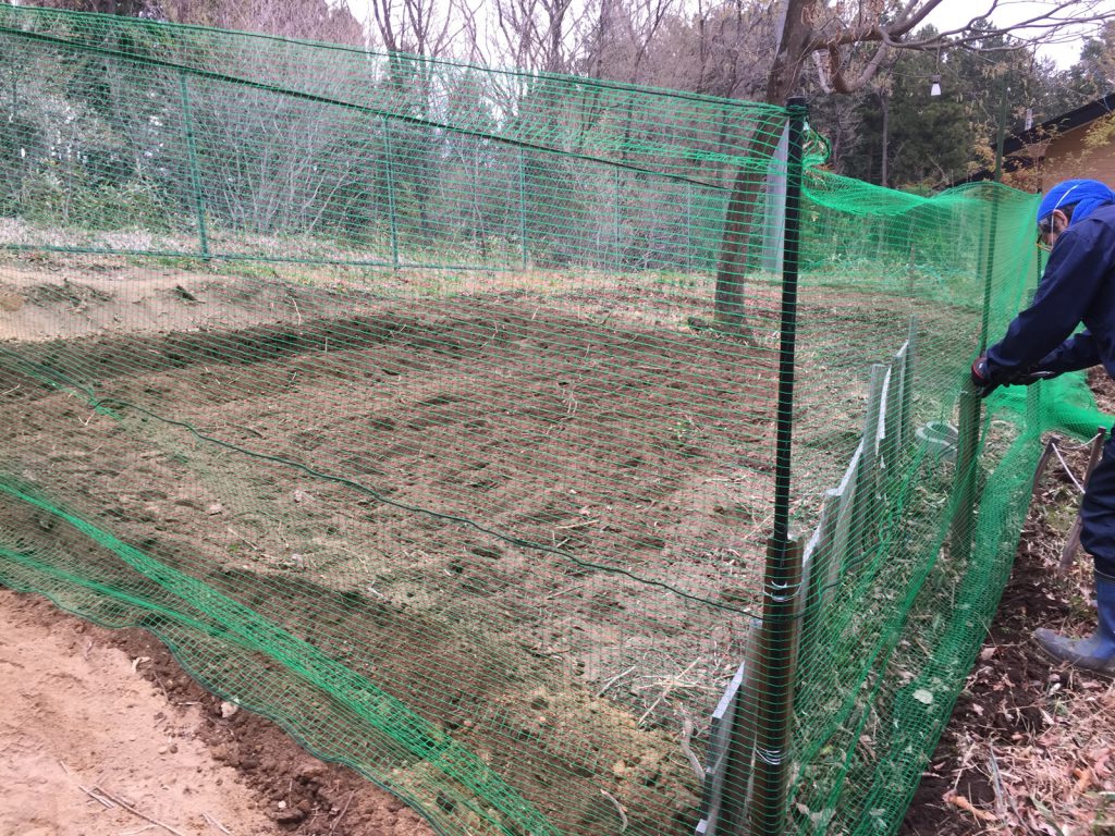 戻ると、耕運機も終え、動物除けネットを張ってたのだ∑(⌒◇⌒;)