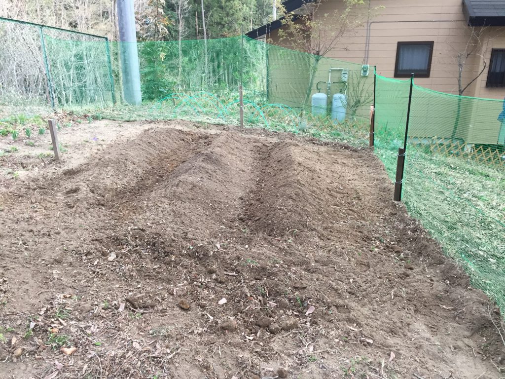 その間に、katsuは畝を作り、、「じゃがいも、やっぱ、植えよう!」とね