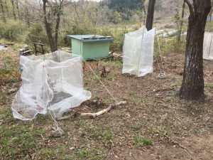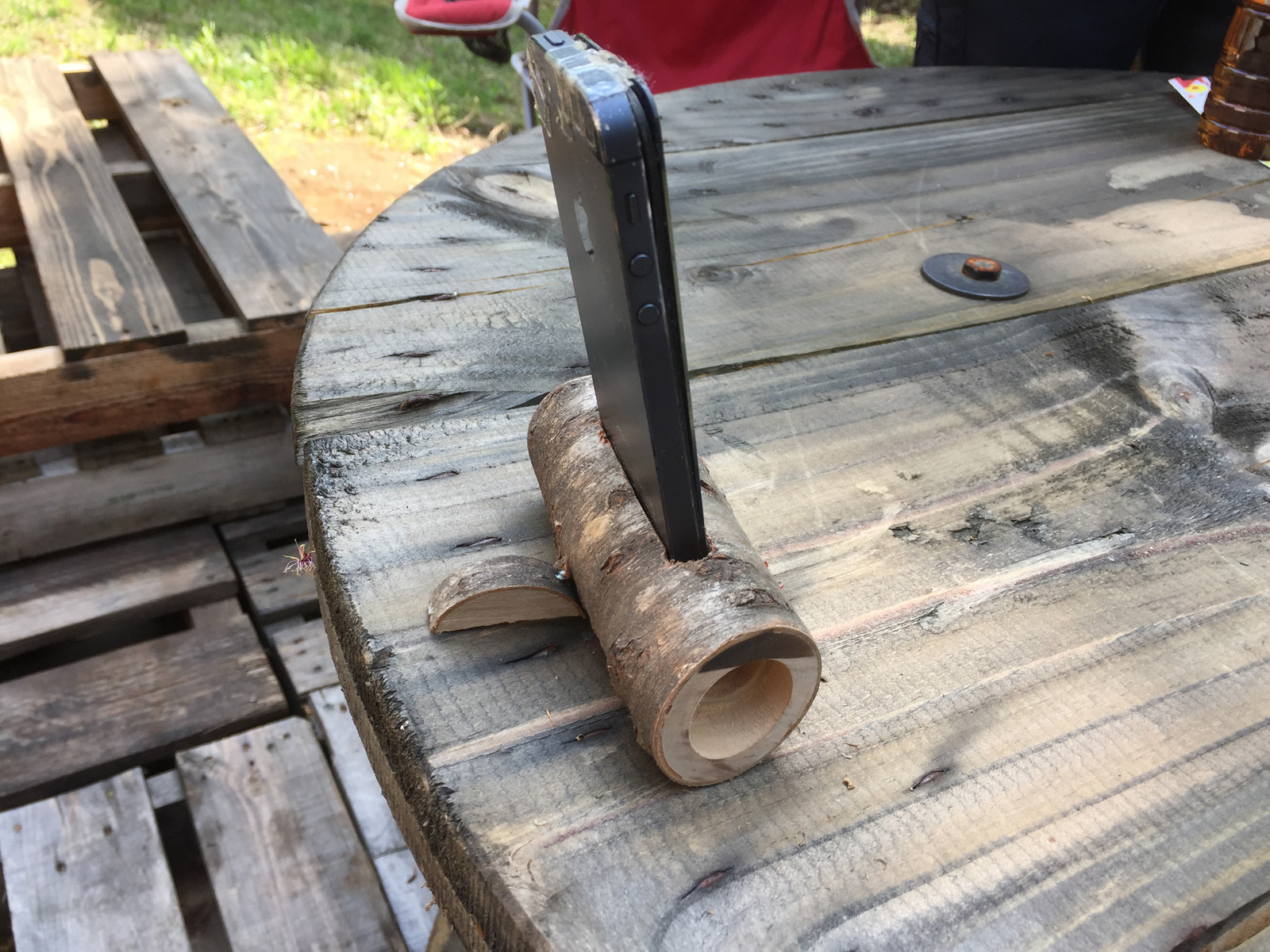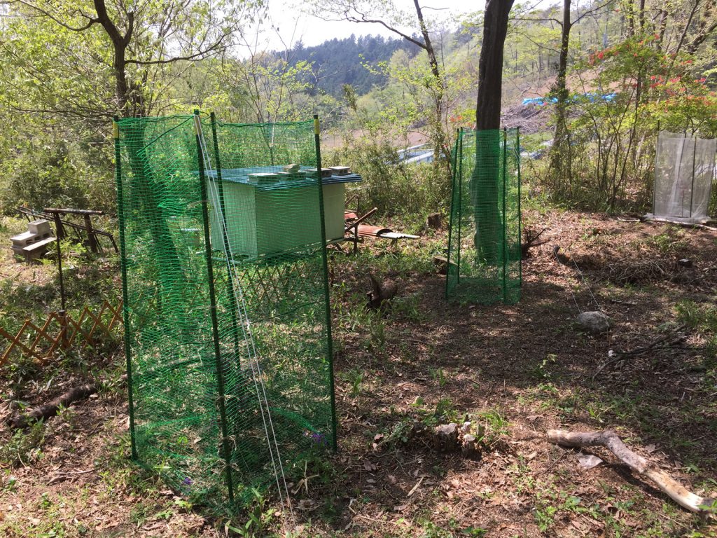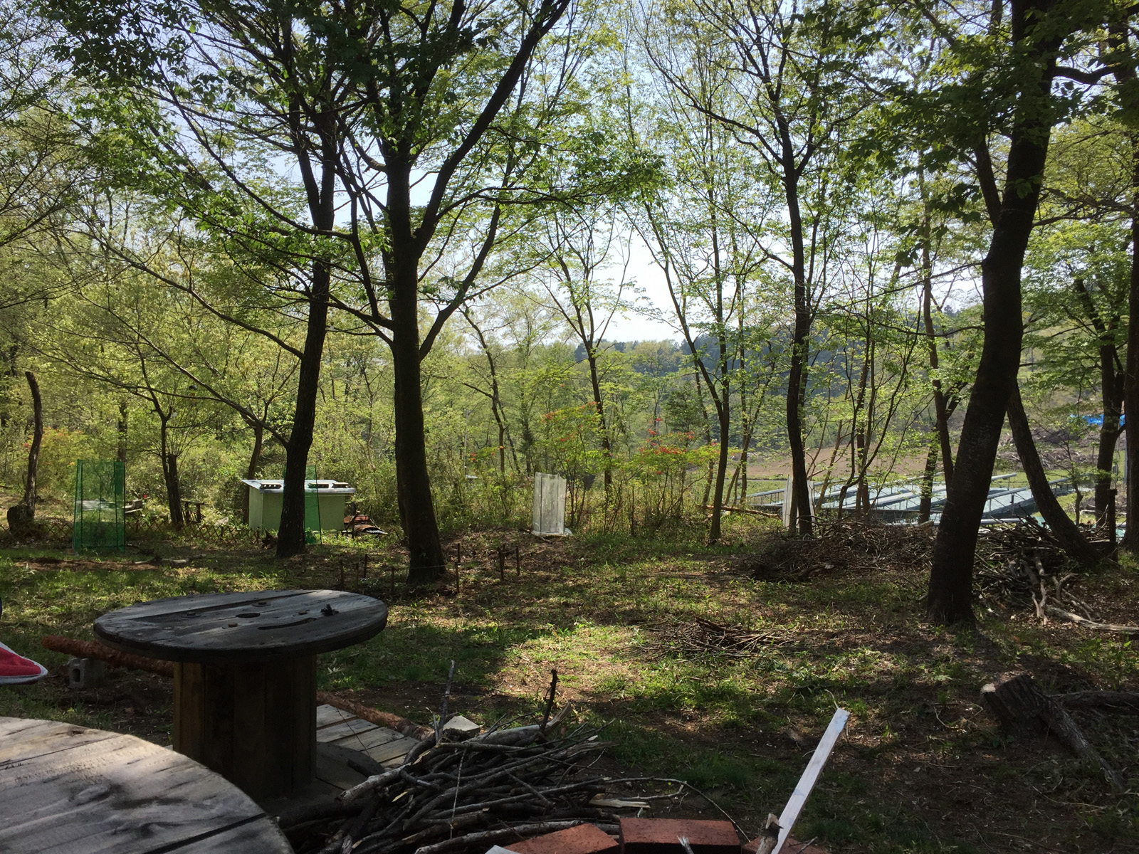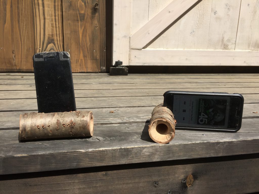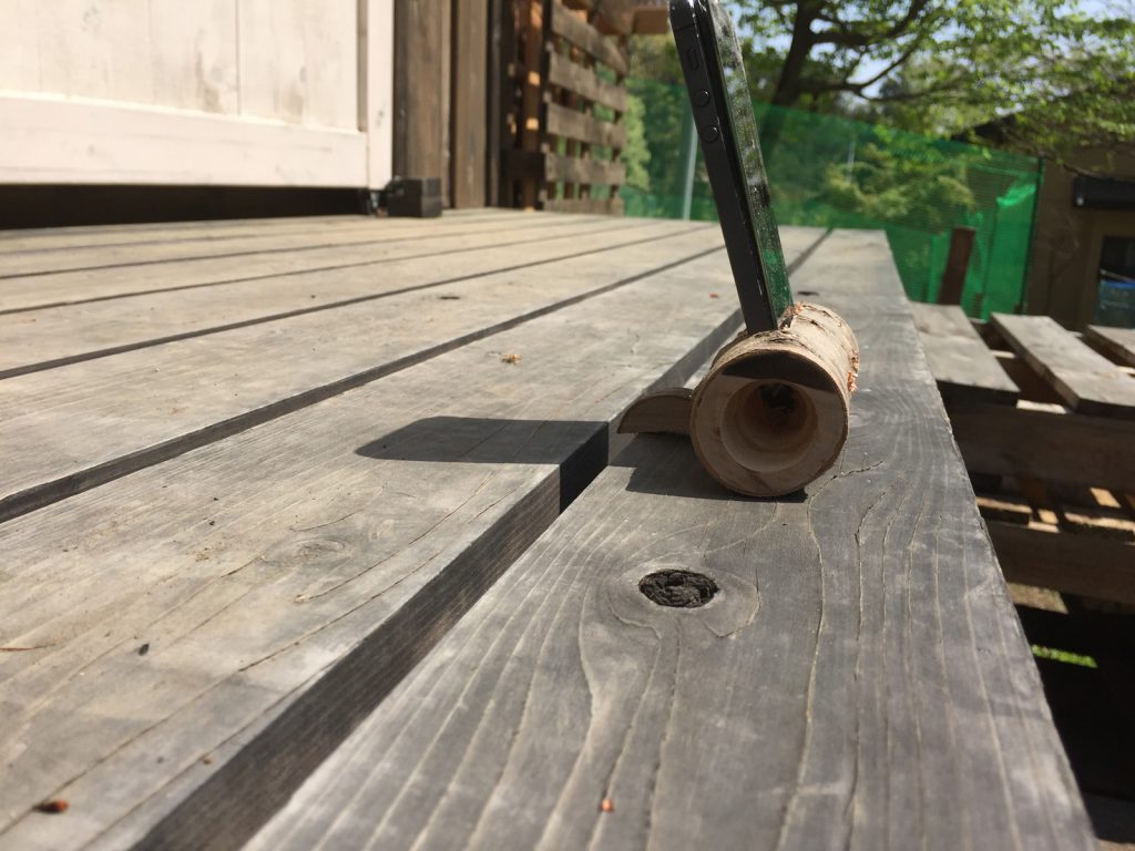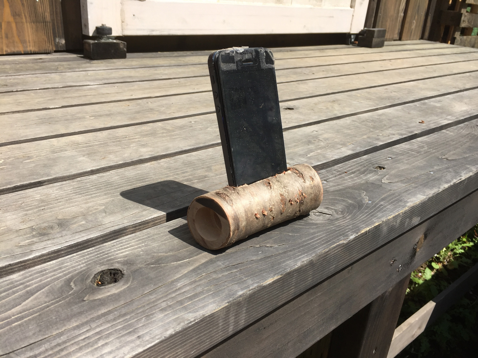 サクラの木で、スピーカー工作してたようだ<ホント、好きだよねッ>