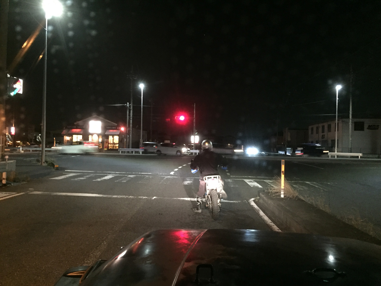 インター降りて、信号待ち_。_年代バイクあるあるのエンジン落ち、、再度キック( ̄- ̄)ゞ