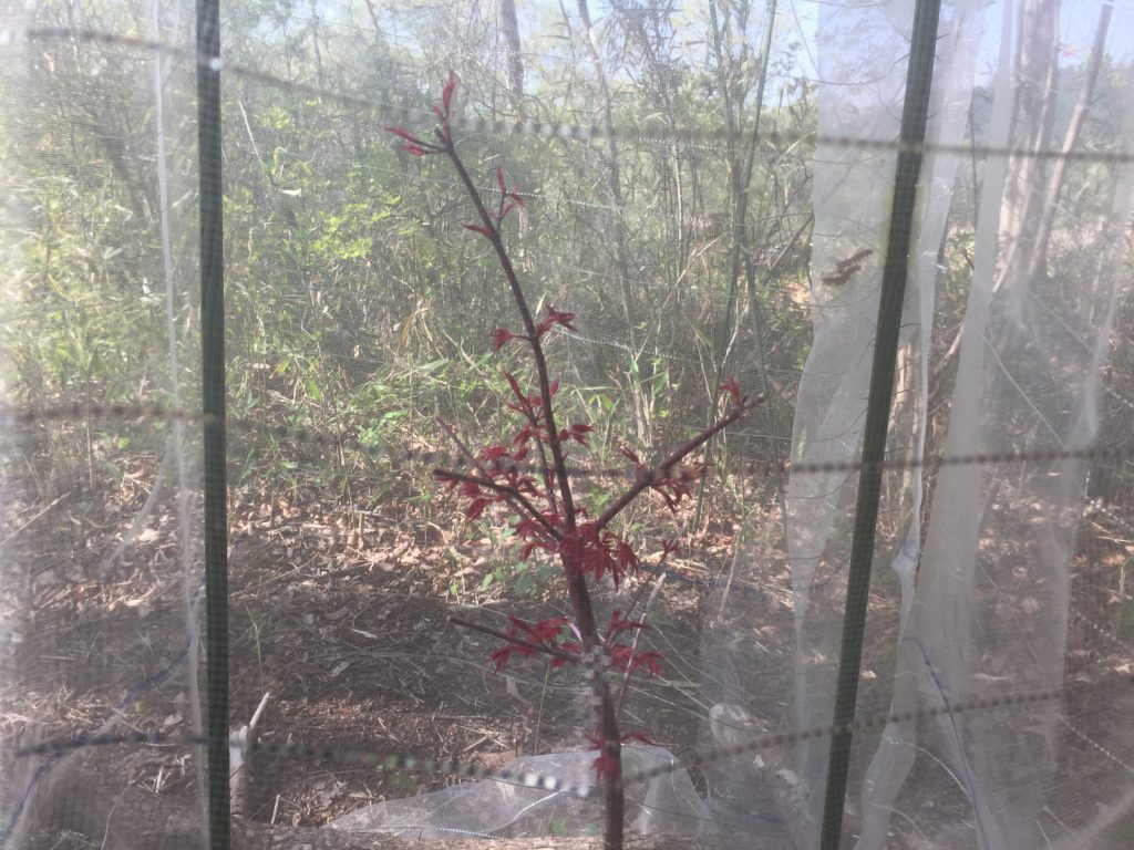 年末植えた、カエデ(もう1本)に芽から葉が出始めてるぅ〜〜〜///