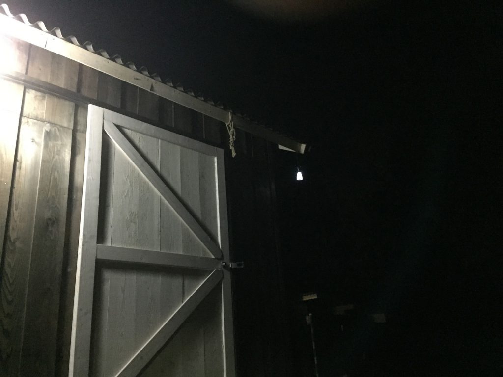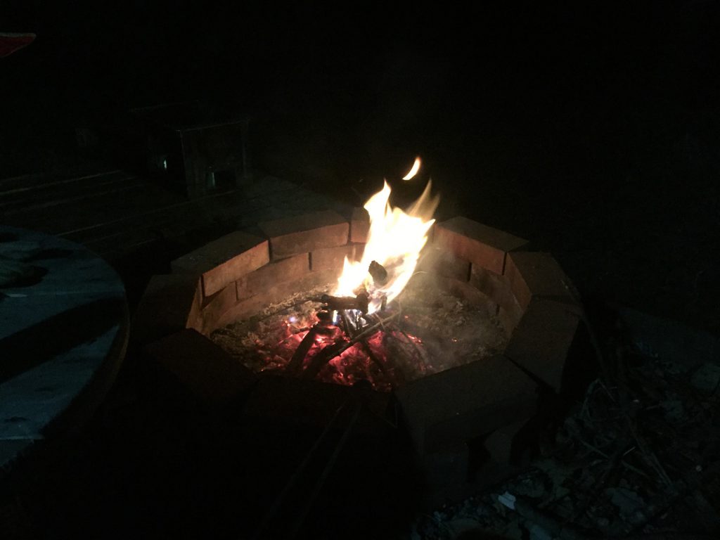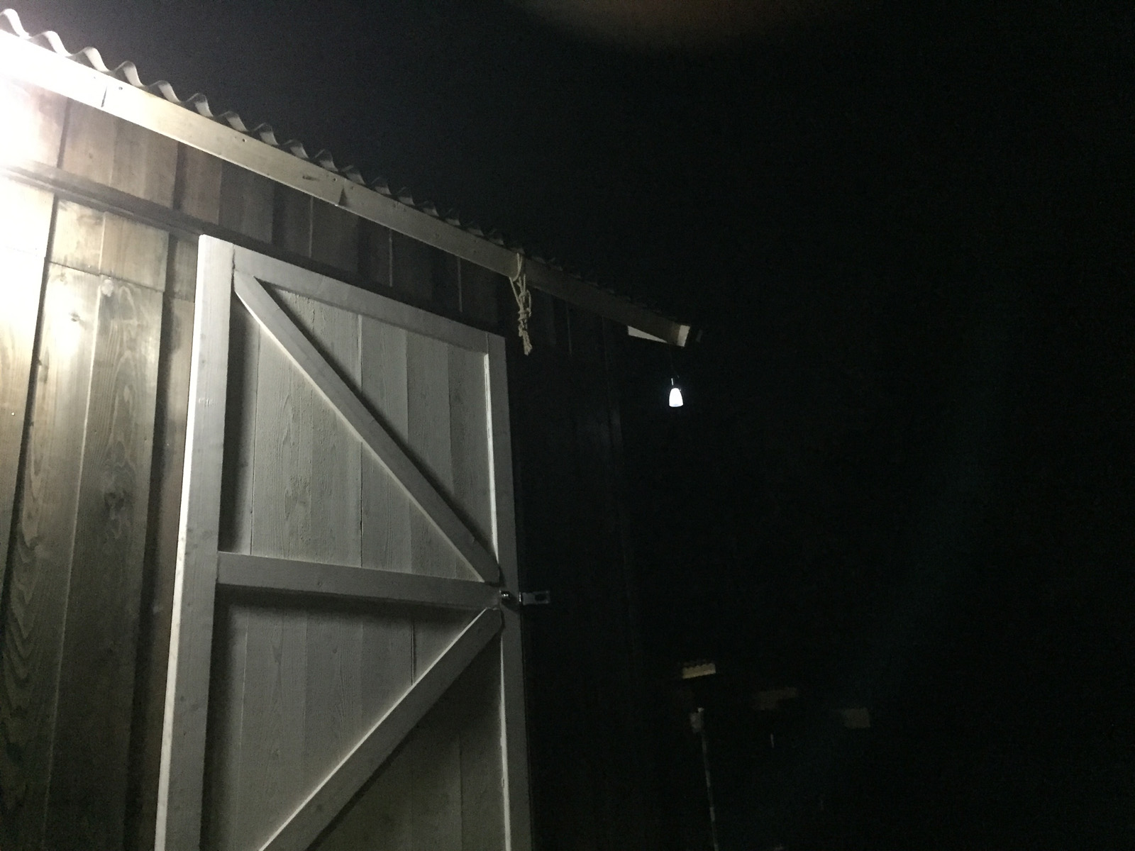焚き火中、古屋の屋根では、イタチなのか、鳥なのか、足音がッ。
