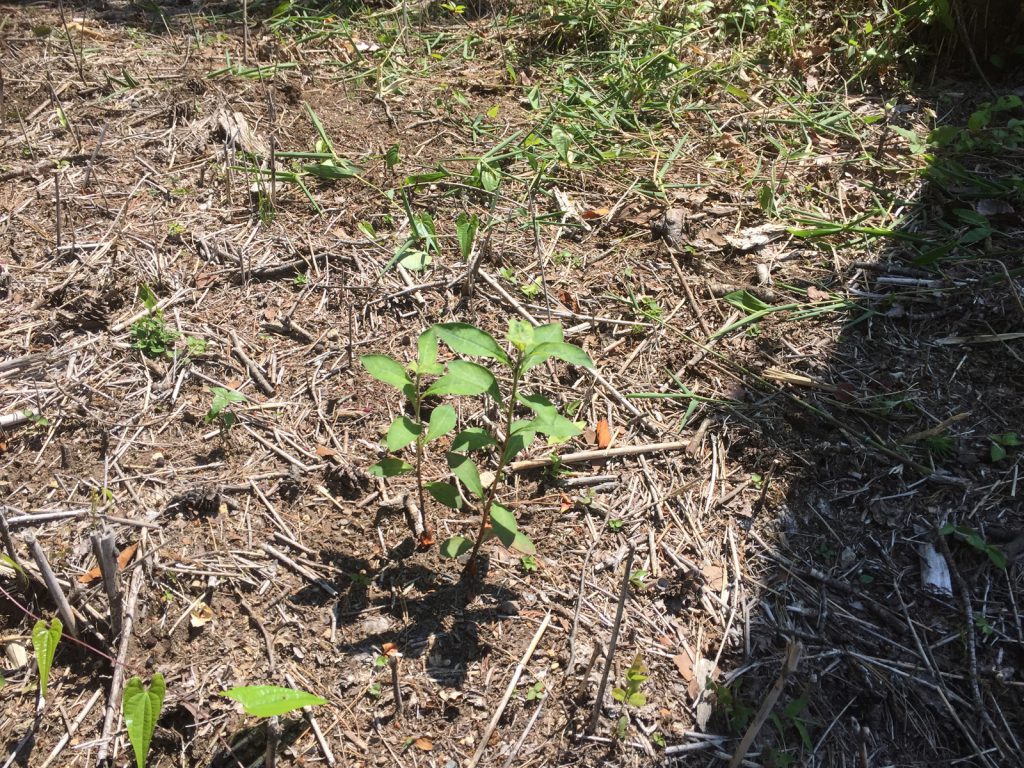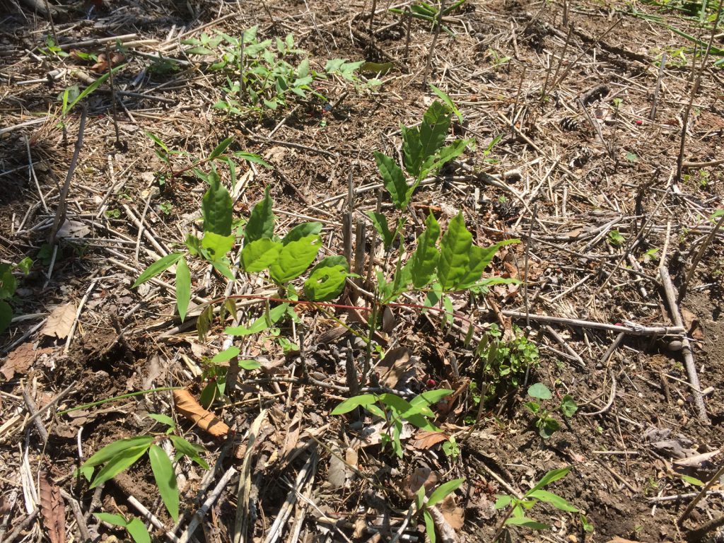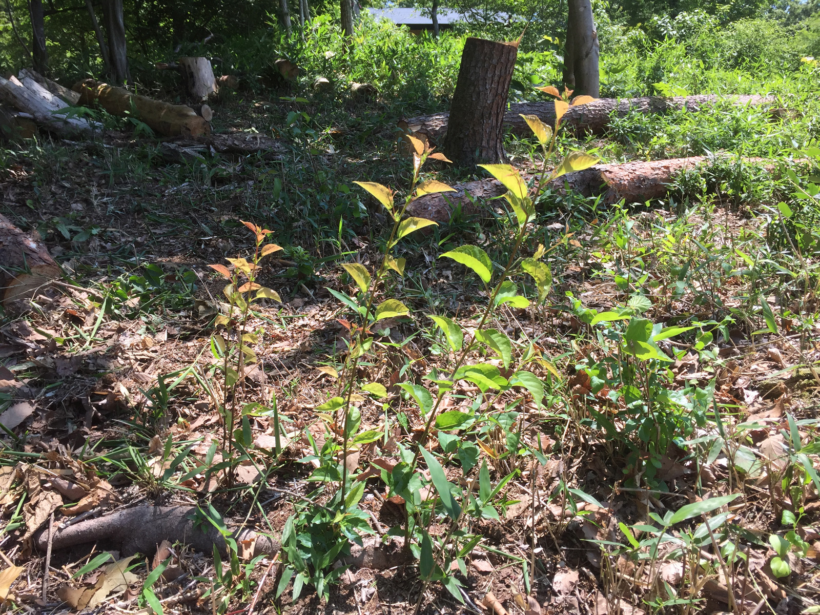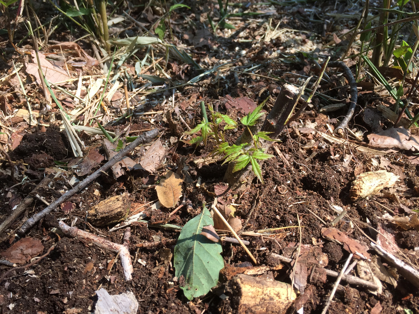 ココを作業中、全く芽も出ずに放置してたカエデが、新葉がでてきて__感動\(゚▽゚=))/
