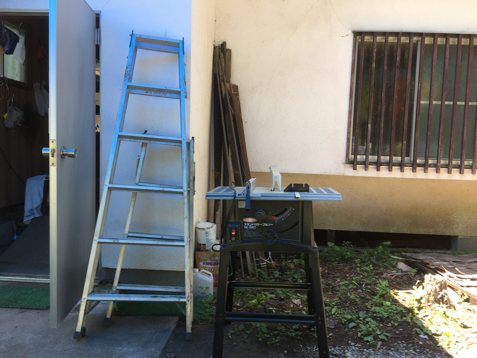脚立、テーブルソー、電気ケーブル、その他も諸々///。