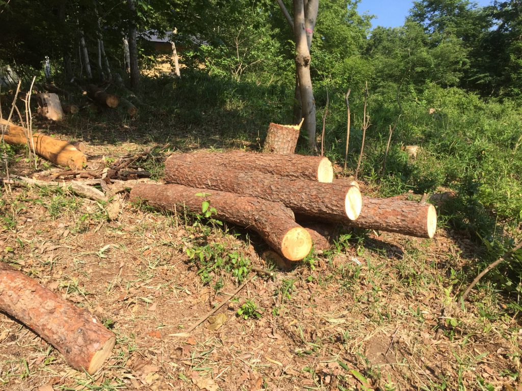 しばらくは、ここで乾燥だけど、薪棚も、新たに作らなきゃッ!