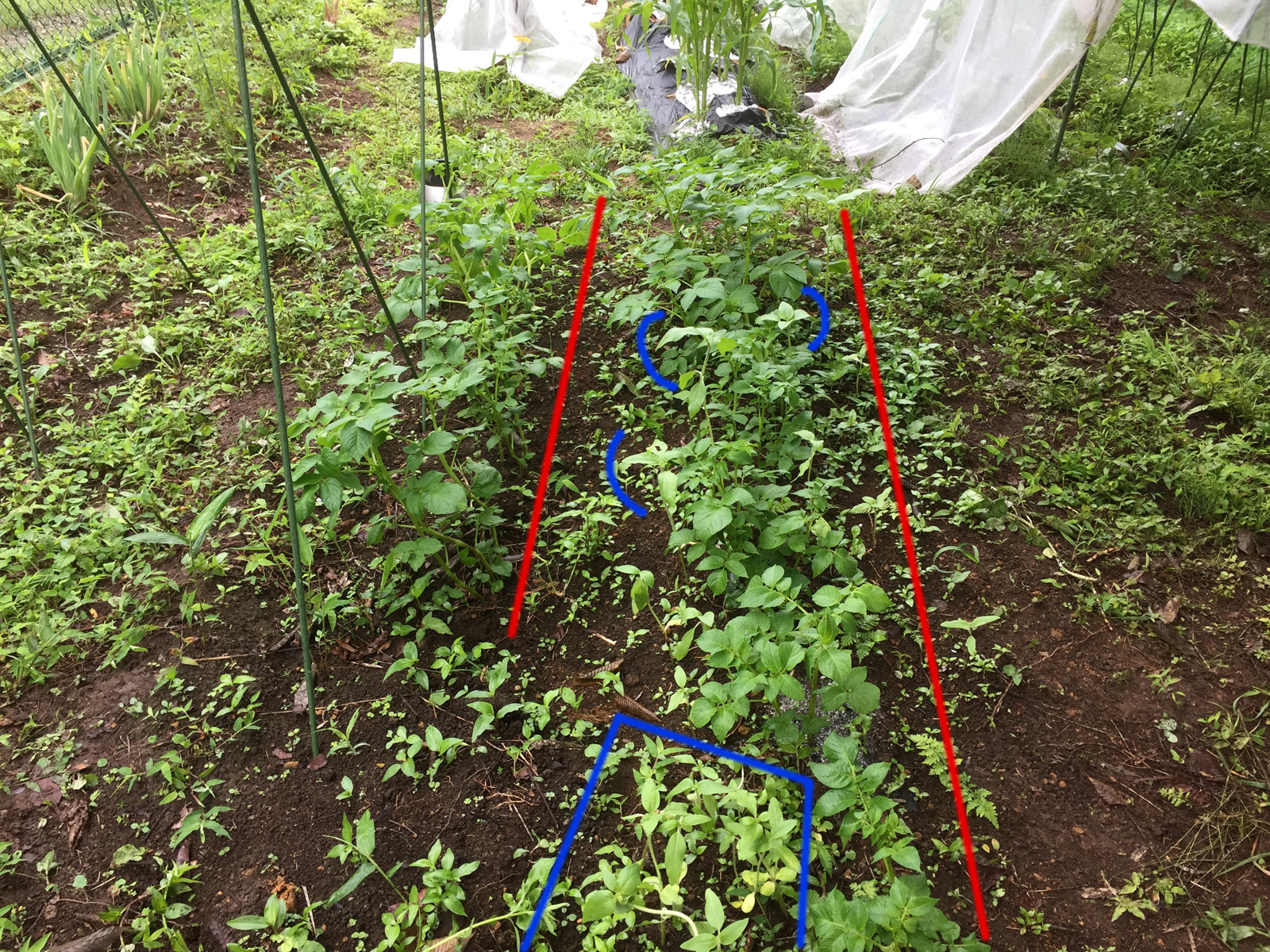それと後植えのジャガイモが、とても元気//(赤いライン)