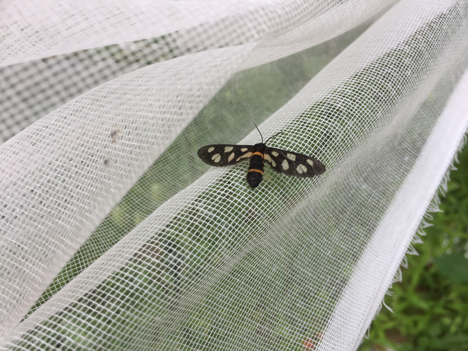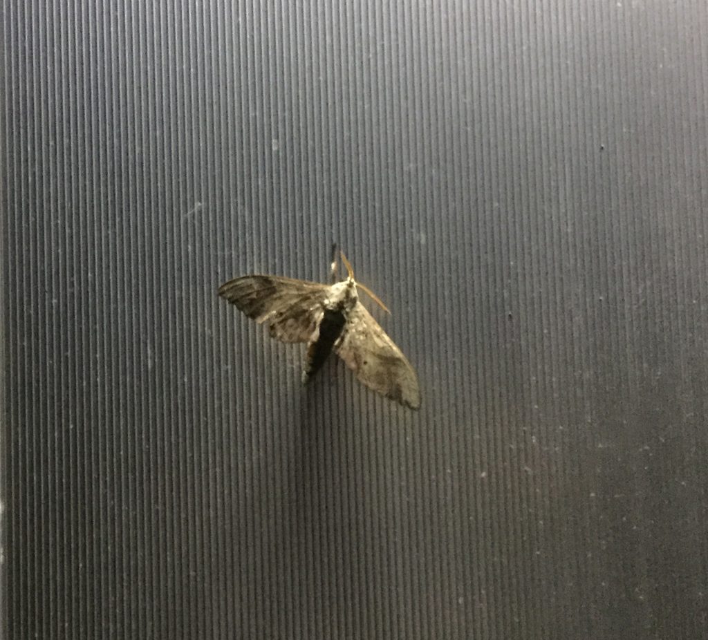暑すぎると、逆に虫が少ない__のに、15cmくらいの蛾!デカっ、(><;)