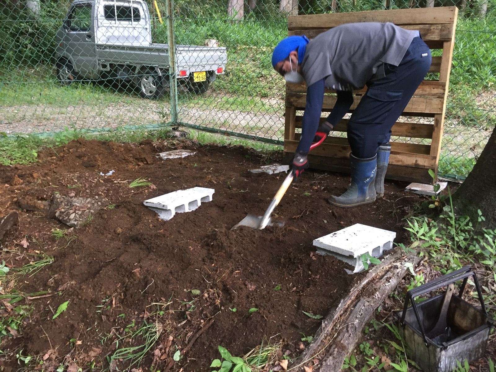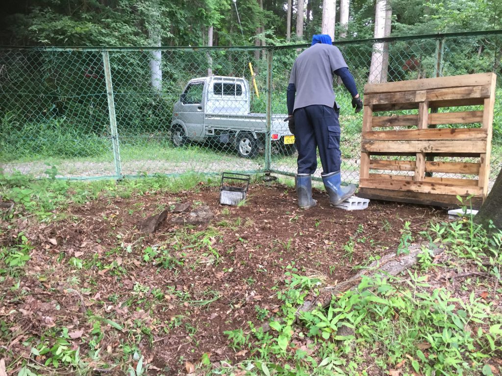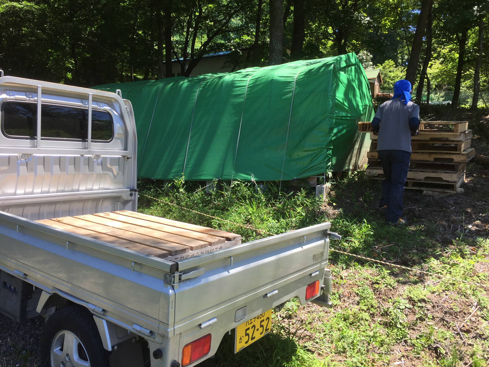 am10:00過ぎ、、近くのリサイクル業者からパレットをもらい、運ぶ__。