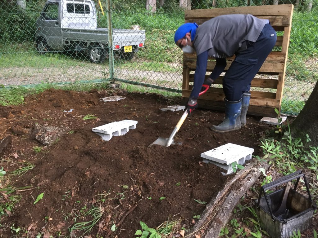 uriは、次の作業、先植えジャガイモだぁ、、、手前の2本残し、掘りかえす。
