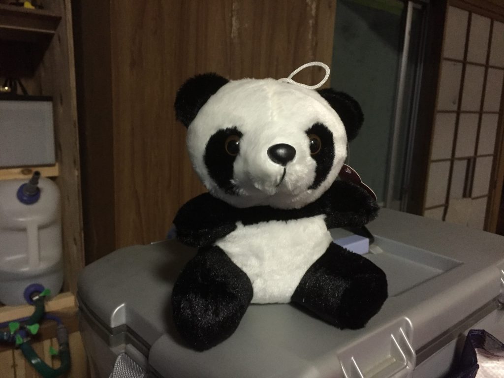 外では、雷がピカってるけど、温泉でGETしたパンダ\(*^▽^*)/